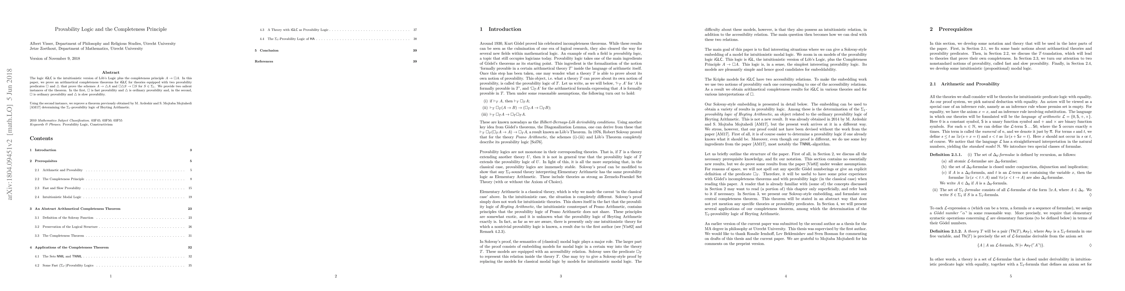 In this paper, we study the provability logic of intuitionistic theories of arithmetic that prove their own completeness. We prove a completeness theorem for theories equipped with two provability predicates $\Box$ and $\triangle$ that prove the schemes $A\to\triangle A$ and $\Box\triangle S\to\Box S$ for $S\in\Sigma_1$. Using this theorem, we determine the logic of fast provability for a number of intuitionistic theories. Furthermore, we reprove a theorem previously obtained by M. Ardeshir and S. Mojtaba Mojtahedi determining the $\Sigma_1$-provability logic of Heyting Arithmetic.
