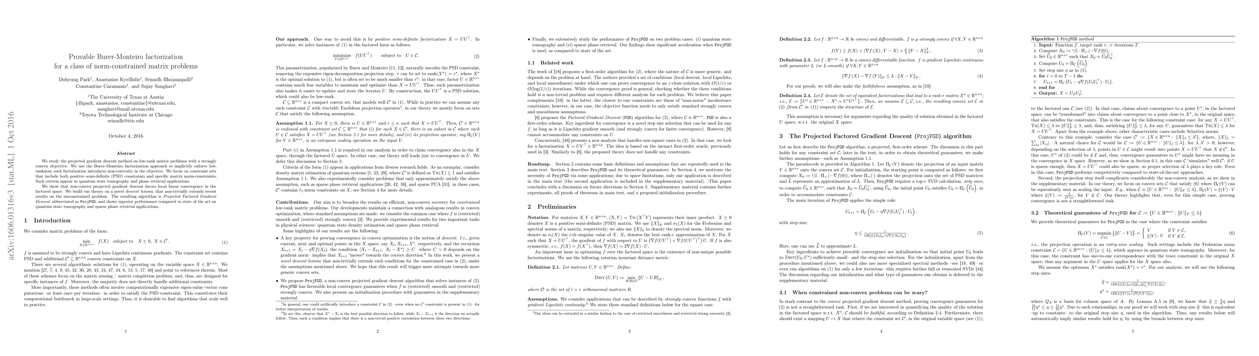 This paper investigates the projected gradient descent method for low-rank matrix problems with strongly convex objectives, employing the Burer-Monteiro factorization to enforce low-rankness. It demonstrates local linear convergence of non-convex projected gradient descent and introduces ProjFGD, which outperforms existing methods in quantum state tomography and sparse phase retrieval.