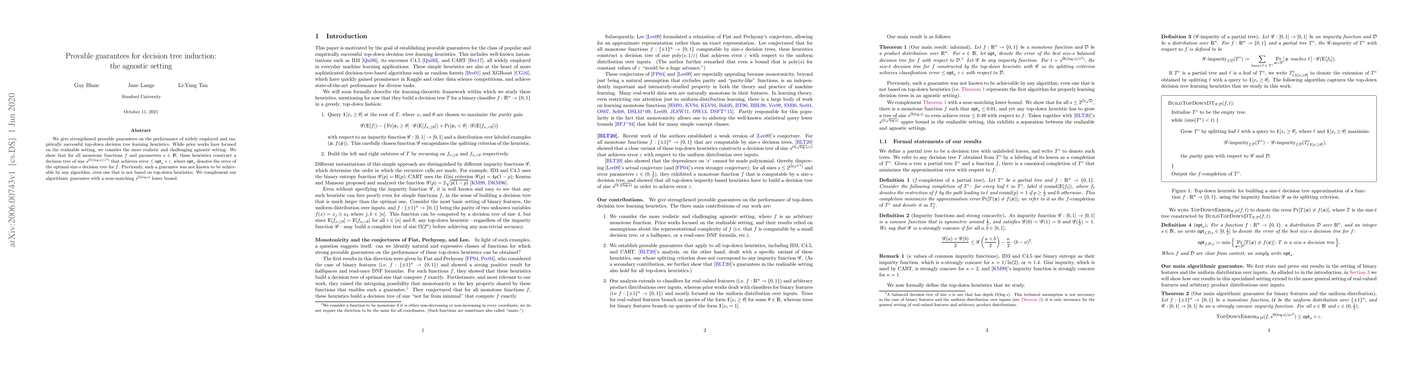 Researchers have developed provable guarantees for decision tree induction algorithms, showing that they can achieve error rates within 1% of the optimal solution in a challenging agnostic setting. The new results improve upon existing knowledge by providing stronger guarantees for top-down decision tree learning heuristics.