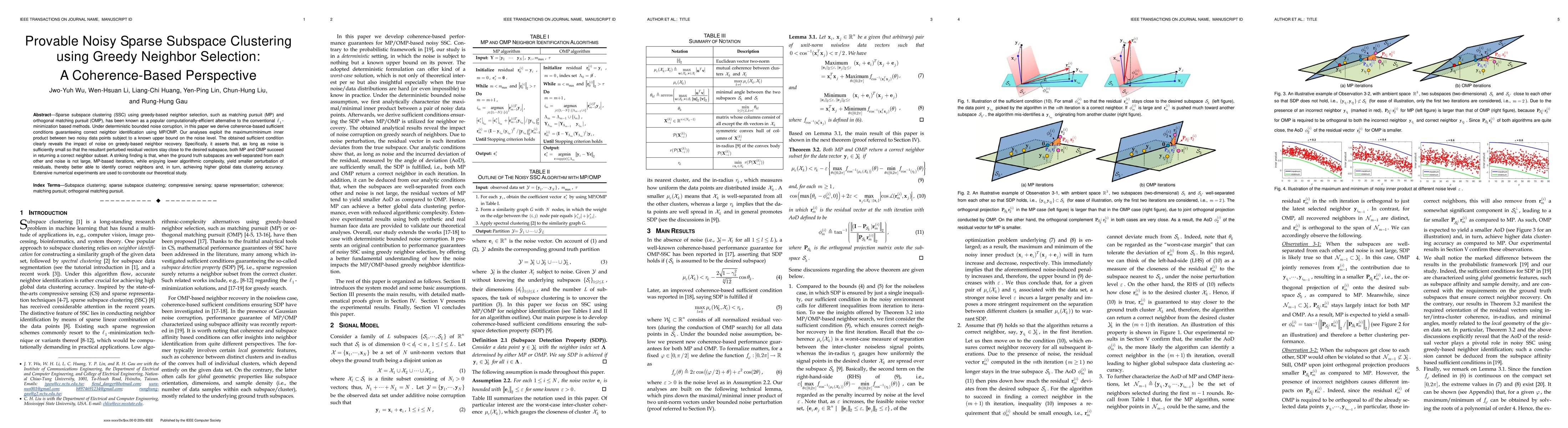 Sparse subspace clustering (SSC) using greedy-based neighbor selection, such as matching pursuit (MP) and orthogonal matching pursuit (OMP), has been known as a popular computationally-efficient alternative to the conventional L1-minimization based methods. Under deterministic bounded noise corruption, in this paper we derive coherence-based sufficient conditions guaranteeing correct neighbor identification using MP/OMP. Our analyses exploit the maximum/minimum inner product between two noisy data points subject to a known upper bound on the noise level. The obtained sufficient condition clearly reveals the impact of noise on greedy-based neighbor recovery. Specifically, it asserts that, as long as noise is sufficiently small so that the resultant perturbed residual vectors stay close to the desired subspace, both MP and OMP succeed in returning a correct neighbor subset. A striking finding is that, when the ground truth subspaces are well-separated from each other and noise is not large, MP-based iterations, while enjoying lower algorithmic complexity, yield smaller perturbation of residuals, thereby better able to identify correct neighbors and, in turn, achieving higher global data clustering accuracy. Extensive numerical experiments are used to corroborate our theoretical study.
