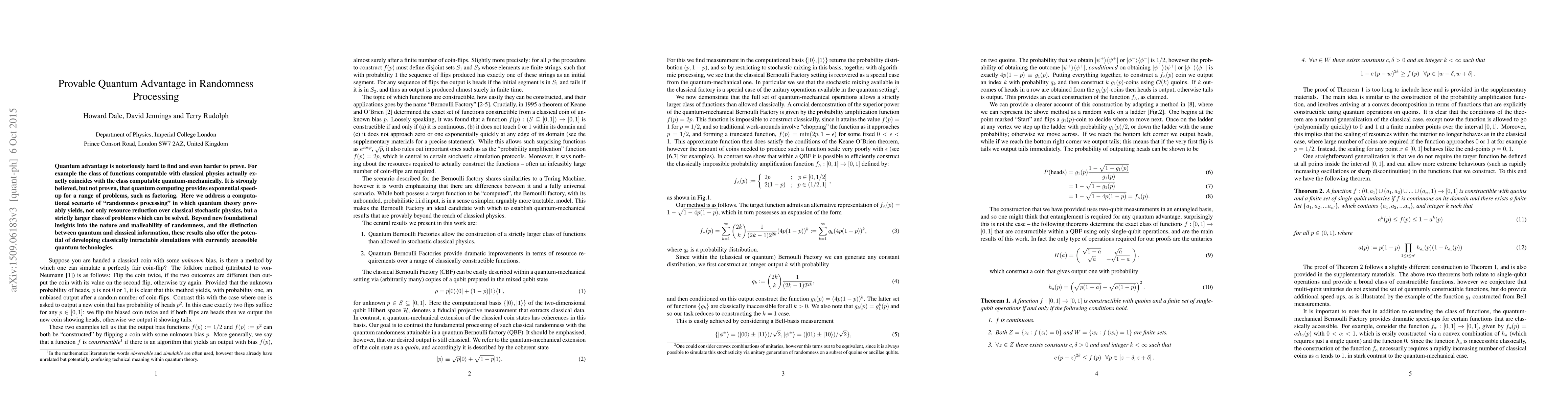 Quantum computing provides a provable advantage over classical physics in processing randomness, solving previously intractable problems and offering potential for new simulations with accessible quantum technologies.
