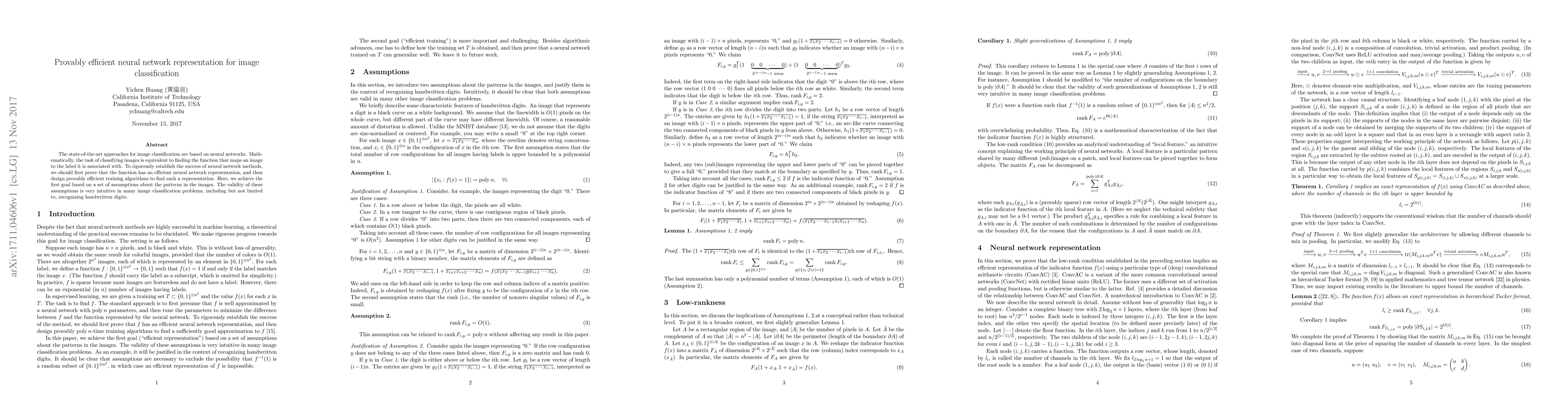 This paper proves that under certain assumptions about image patterns, there exists an efficient neural network representation for image classification. It establishes the theoretical foundation for the success of neural network methods in image classification tasks.