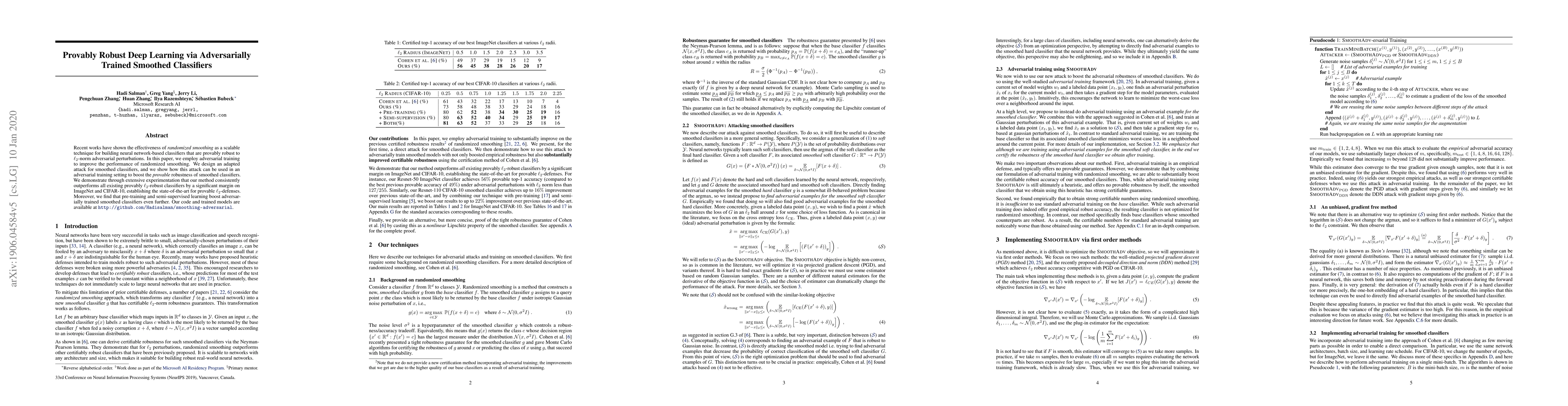 This paper proposes an adversarial training method to enhance the provable robustness of randomized smoothed classifiers against $\ell_2$-norm adversarial attacks. The authors develop an adapted attack for smoothed classifiers and demonstrate that adversarial training, combined with pre-training and semi-supervised learning, significantly outperforms existing methods on ImageNet and CIFAR-10 datasets.