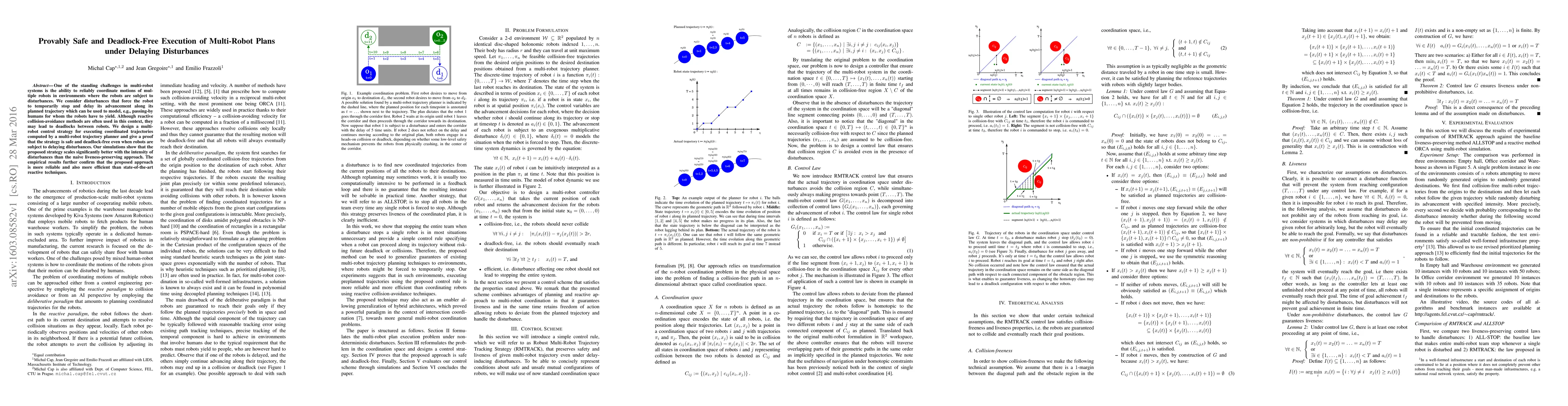 This paper proposes a novel multi-robot control strategy that guarantees safe and deadlock-free execution of coordinated trajectories under delaying disturbances, outperforming existing reactive collision-avoidance methods in terms of reliability and efficiency. The strategy scales better with disturbance intensity and is proven to be both safe and deadlock-free.