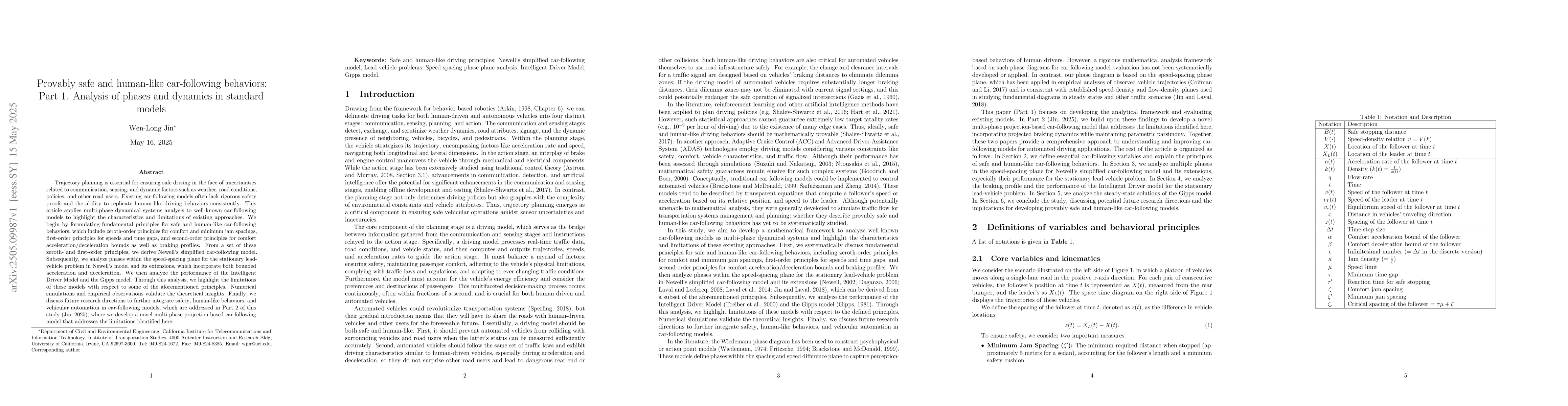 Application of multi-phase dynamical systems analysis to car-following models and formulation of fundamental principles for safe and human-like car-following behaviors.