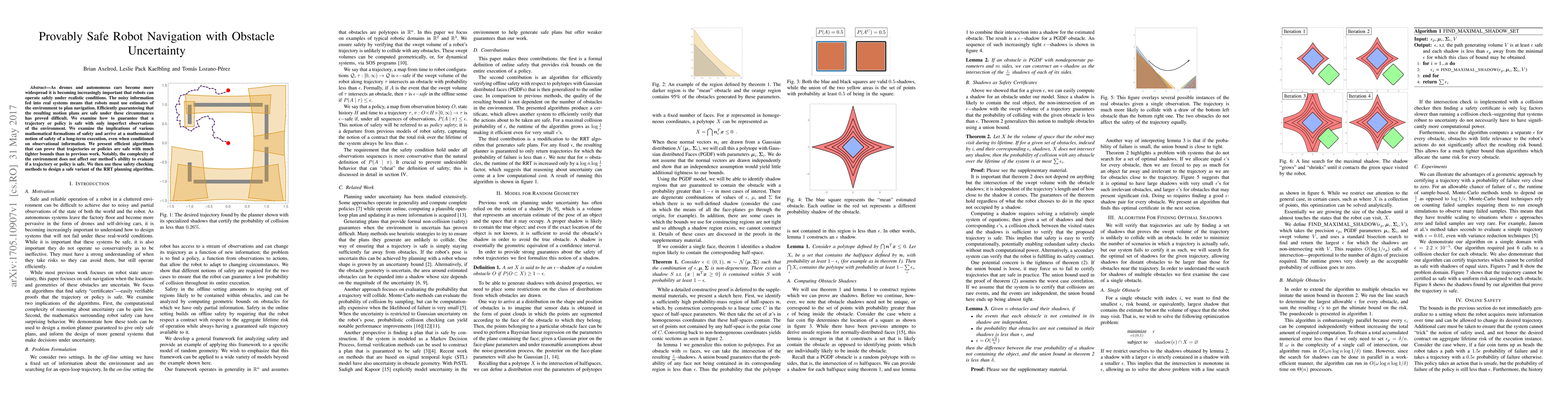 As drones and autonomous cars become more widespread it is becoming increasingly important that robots can operate safely under realistic conditions. The noisy information fed into real systems means that robots must use estimates of the environment to plan navigation. Efficiently guaranteeing that the resulting motion plans are safe under these circumstances has proved difficult. We examine how to guarantee that a trajectory or policy is safe with only imperfect observations of the environment. We examine the implications of various mathematical formalisms of safety and arrive at a mathematical notion of safety of a long-term execution, even when conditioned on observational information. We present efficient algorithms that can prove that trajectories or policies are safe with much tighter bounds than in previous work. Notably, the complexity of the environment does not affect our methods ability to evaluate if a trajectory or policy is safe. We then use these safety checking methods to design a safe variant of the RRT planning algorithm.