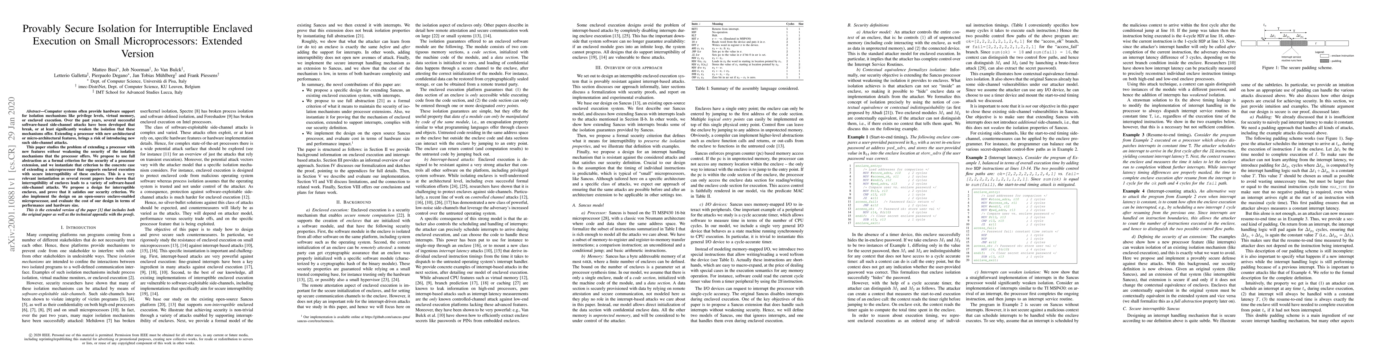 Researchers propose a design for secure interruptible enclaves on small microprocessors, proving its provably secure isolation mechanism without compromising performance or hardware size.