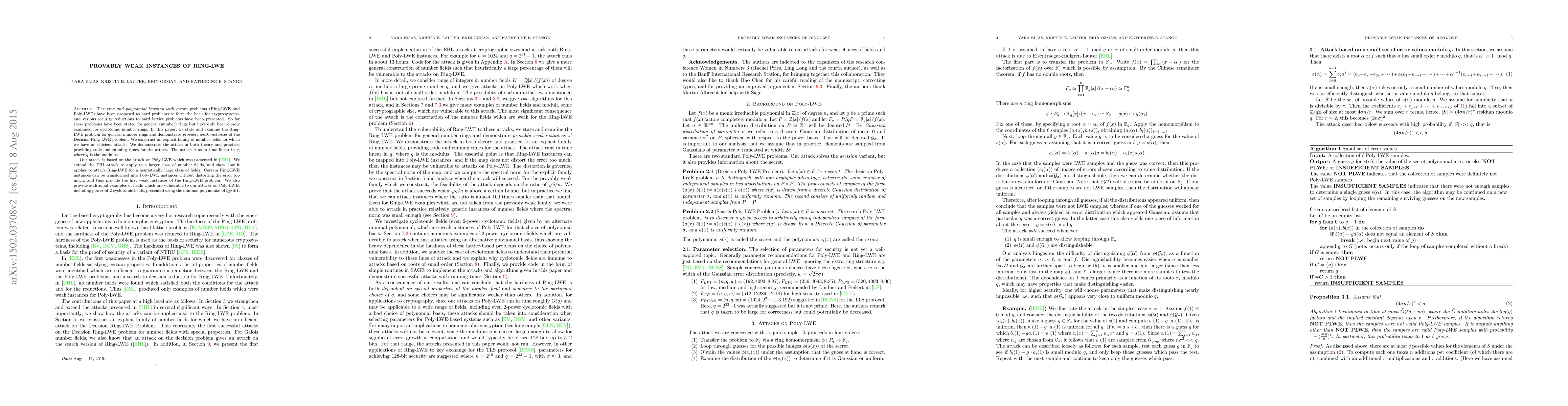 This paper examines the Ring-LWE problem for general number rings and identifies provably weak instances, demonstrating an efficient attack based on the Poly-LWE attack. The authors extend the EHL-attack to a broader class of number fields, providing both theoretical and practical evidence of their method.