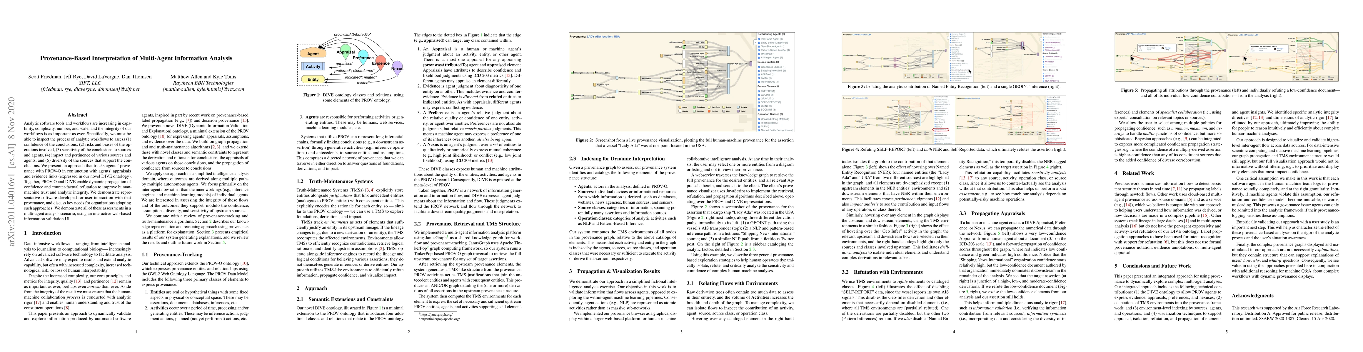 The research presents an approach that tracks agents' provenance with PROV-O in conjunction with agents' appraisals and evidence links (expressed in the novel DIVE ontology). It demonstrates representative software for user interaction with that provenance and discusses key needs for organizations adopting such approaches.