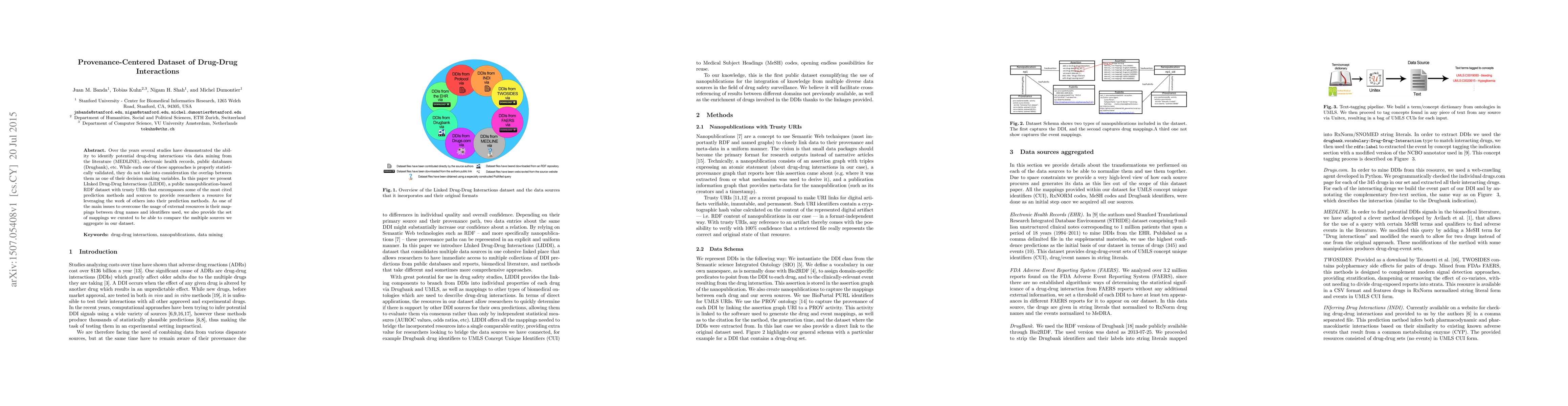 Over the years several studies have demonstrated the ability to identify potential drug-drug interactions via data mining from the literature (MEDLINE), electronic health records, public databases (Drugbank), etc. While each one of these approaches is properly statistically validated, they do not take into consideration the overlap between them as one of their decision making variables. In this paper we present LInked Drug-Drug Interactions (LIDDI), a public nanopublication-based RDF dataset with trusty URIs that encompasses some of the most cited prediction methods and sources to provide researchers a resource for leveraging the work of others into their prediction methods. As one of the main issues to overcome the usage of external resources is their mappings between drug names and identifiers used, we also provide the set of mappings we curated to be able to compare the multiple sources we aggregate in our dataset.