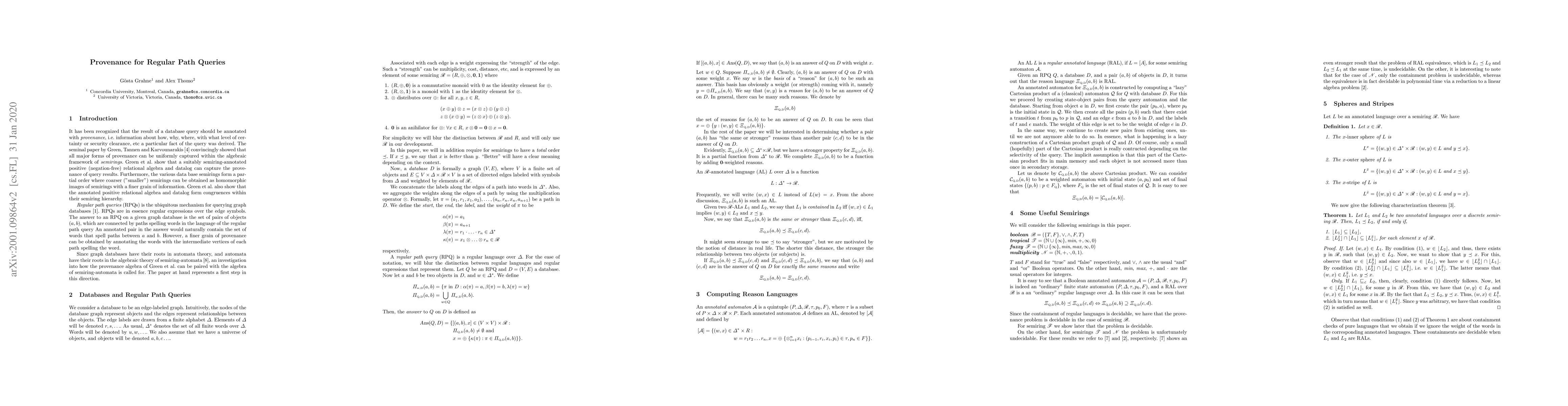 Regular path queries (RPQs) the ubiquitous mechanism for querying data graphs of partially known structure. RPQs are in essence regular expressions over the edge symbols. The answer to an RPQ on a given graph (database) is the set of pairs of objects, which are connected by paths spelling words in the language of the regular path query. Often the database edges come with a weights assoaciated to them. Such weights can distances, levels of discomfort, multiplicities, etc. We model weights using semiring frameworks.