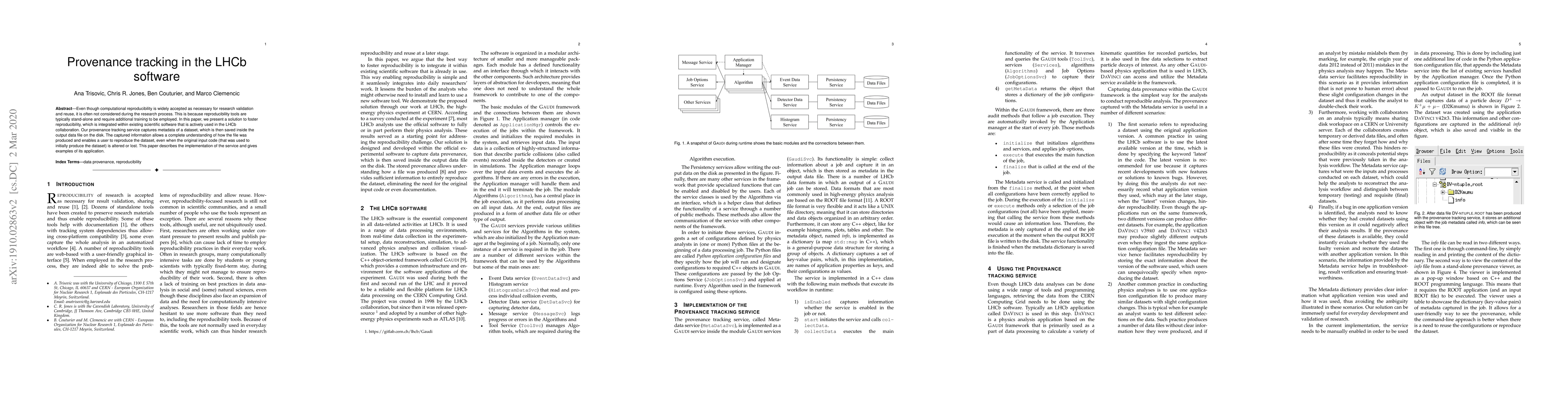 This paper presents a provenance tracking service integrated into LHCb software to enhance computational reproducibility by capturing dataset metadata, which is saved within output files. This ensures users can reproduce datasets even if original input code is altered or lost, facilitating research validation and reuse.