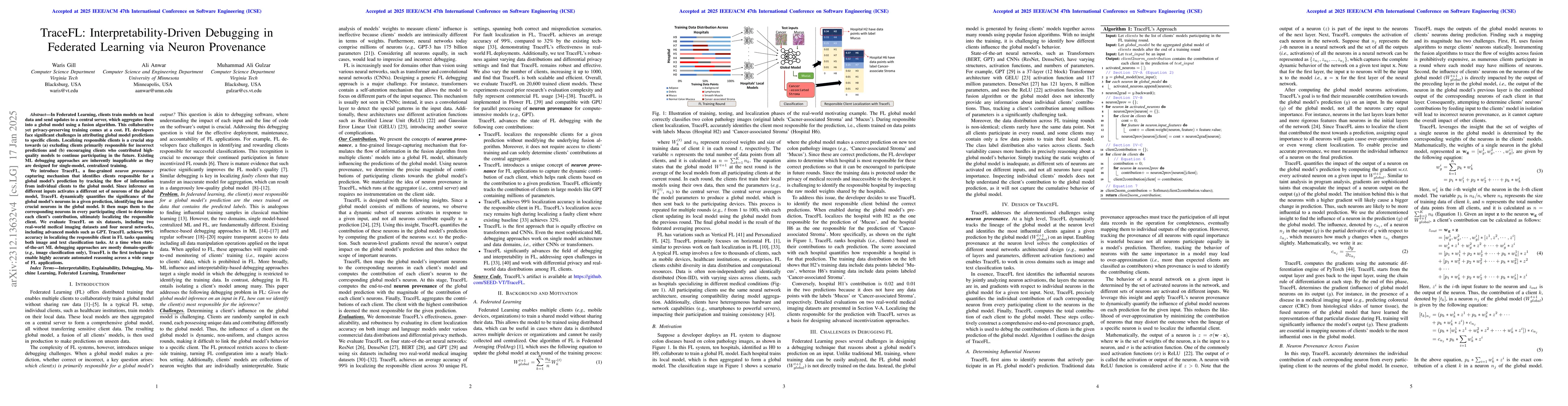 ProvFL introduces a mechanism for interpretability in federated learning by dynamically tracking influential neurons to identify client contributions to the global model, achieving 97% accuracy in provenance localization and outperforming existing fault localization methods by 50%.