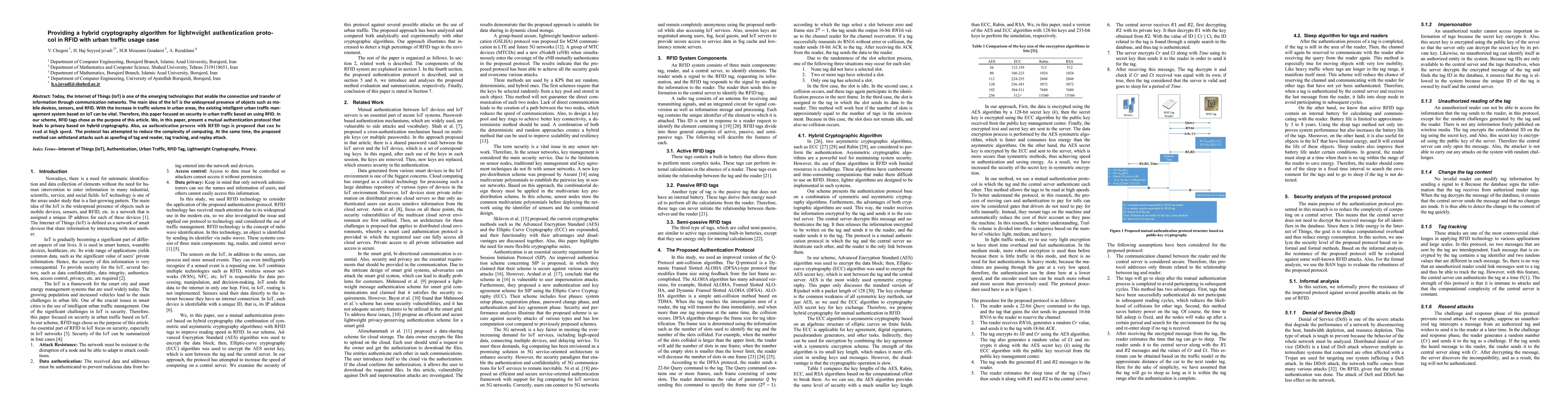 Today, the Internet of Things (IoT) is one of the emerging technologies that enable the connection and transfer of information through communication networks. The main idea of the IoT is the widespread presence of objects such as mobile devices, sensors, and RFID. With the increase in traffic volume in urban areas, the existing intelligent urban traffic management system based on IoT can be vital. Therefore, this paper focused on security in urban traffic based on using RFID. In our scheme, RFID tags chose as the purpose of this article. We, in this paper, present a mutual authentication protocol that leads to privacy based on hybrid cryptography. Also, an authentication process with RFID tags is proposed that can be read at high speed. The protocol has attempted to reduce the complexity of computing. At the same time, the proposed method can withstand attacks such as spoofing of tag and reader, tag tracking, and replay attack.
