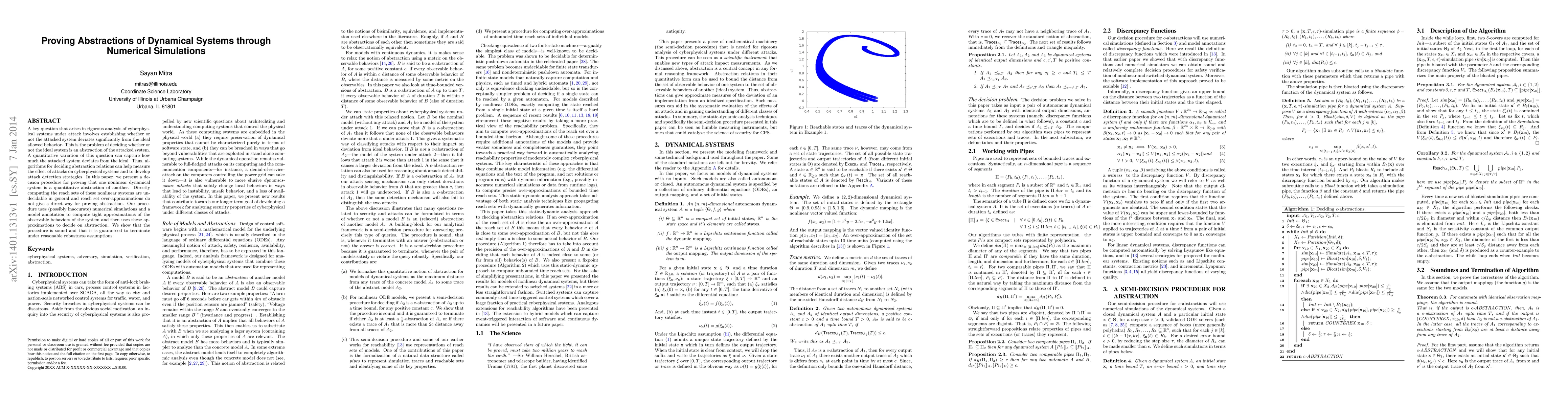 A key question that arises in rigorous analysis of cyberphysical systems under attack involves establishing whether or not the attacked system deviates significantly from the ideal allowed behavior. This is the problem of deciding whether or not the ideal system is an abstraction of the attacked system. A quantitative variation of this question can capture how much the attacked system deviates from the ideal. Thus, algorithms for deciding abstraction relations can help measure the effect of attacks on cyberphysical systems and to develop attack detection strategies. In this paper, we present a decision procedure for proving that one nonlinear dynamical system is a quantitative abstraction of another. Directly computing the reach sets of these nonlinear systems are undecidable in general and reach set over-approximations do not give a direct way for proving abstraction. Our procedure uses (possibly inaccurate) numerical simulations and a model annotation to compute tight approximations of the observable behaviors of the system and then uses these approximations to decide on abstraction. We show that the procedure is sound and that it is guaranteed to terminate under reasonable robustness assumptions.