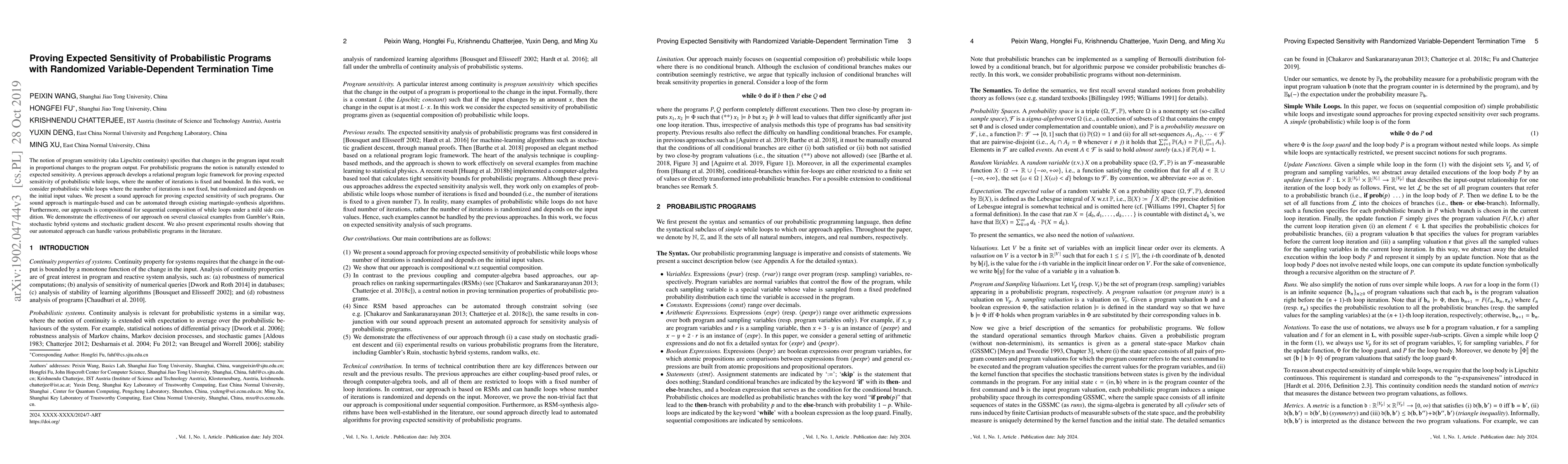 This paper presents a martingale-based method for proving expected sensitivity in probabilistic programs with randomized termination times. The approach is compositional and can be automated, demonstrated through examples and experiments on classical probabilistic models.