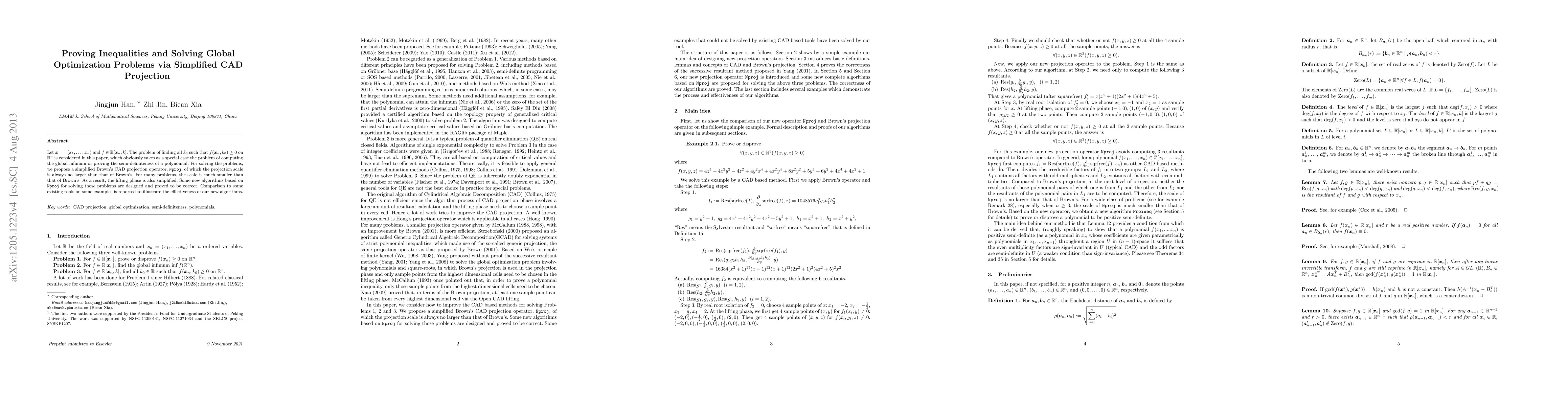 Let $\xx_n=(x_1,\ldots,x_n)$ and $f\in \R[\xx_n,k]$. The problem of finding all $k_0$ such that $f(\xx_n,k_0)\ge 0$ on $\mathbb{R}^n$ is considered in this paper, which obviously takes as a special case the problem of computing the global infimum or proving the semi-definiteness of a polynomial. For solving the problems, we propose a simplified Brown's CAD projection operator, \Nproj, of which the projection scale is always no larger than that of Brown's. For many problems, the scale is much smaller than that of Brown's. As a result, the lifting phase is also simplified. Some new algorithms based on \Nproj\ for solving those problems are designed and proved to be correct. Comparison to some existing tools on some examples is reported to illustrate the effectiveness of our new algorithms.