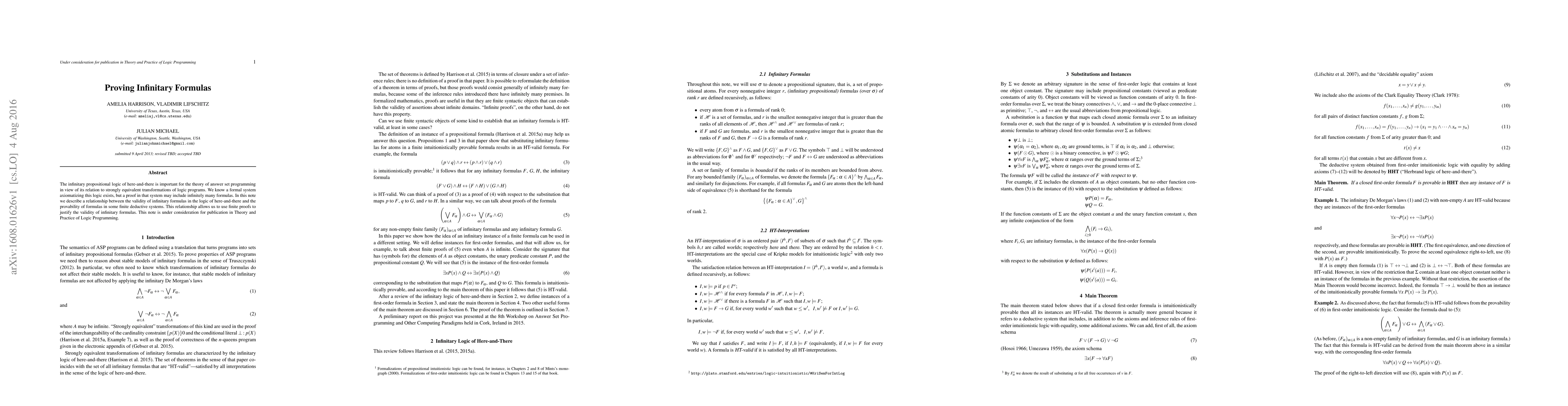 This paper explores the relationship between the validity of infinitary formulas in the logic of here-and-there and finite deductive systems, enabling the use of finite proofs to justify the validity of these complex formulas. The findings are significant for advancing the theory of answer set programming.