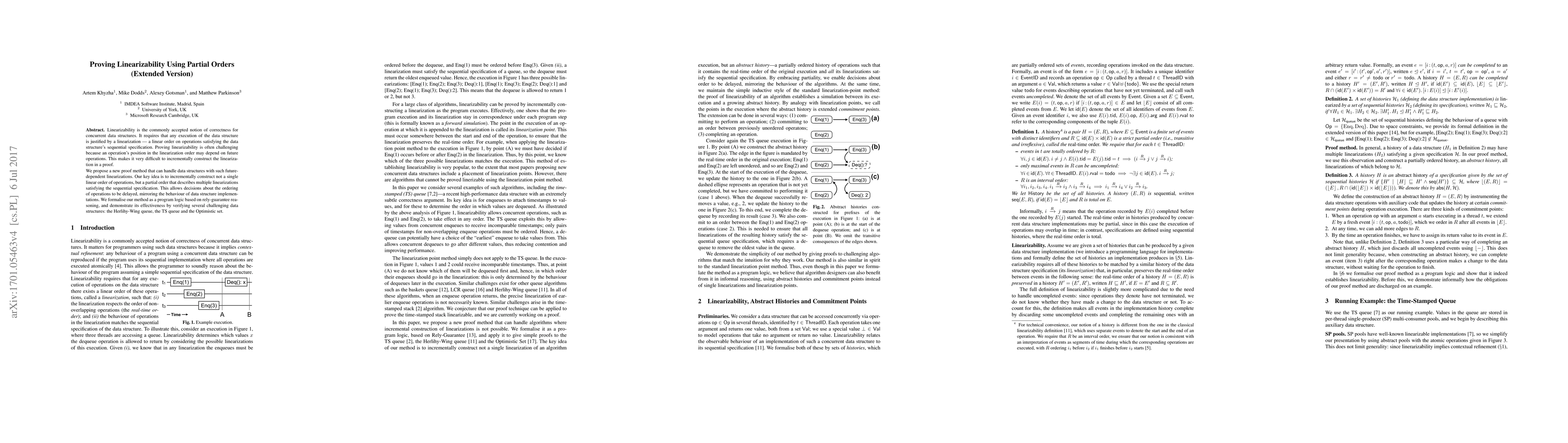 This paper proposes a novel proof method using partial orders to handle linearizability in concurrent data structures, where operation orderings depend on future operations. The method incrementally constructs a partial order that accommodates multiple valid linearizations, enabling delayed decisions about operation orderings.