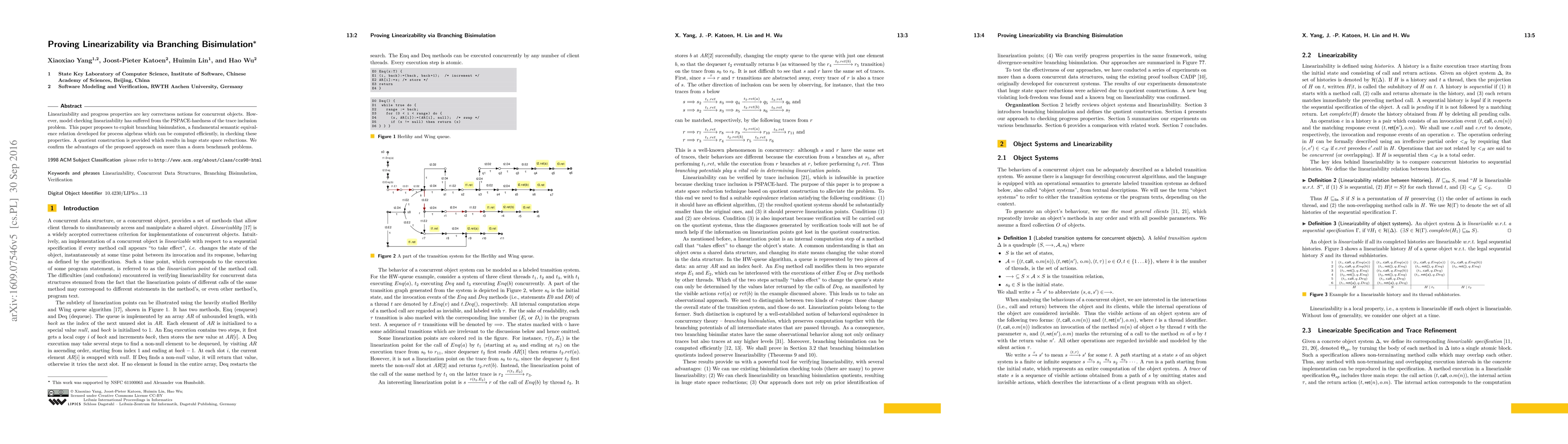 This paper proposes using branching bisimulation to efficiently check linearizability and progress properties in concurrent objects, overcoming the PSPACE-hardness issue. The method achieves significant state space reductions through a quotient construction, validated on various benchmarks.