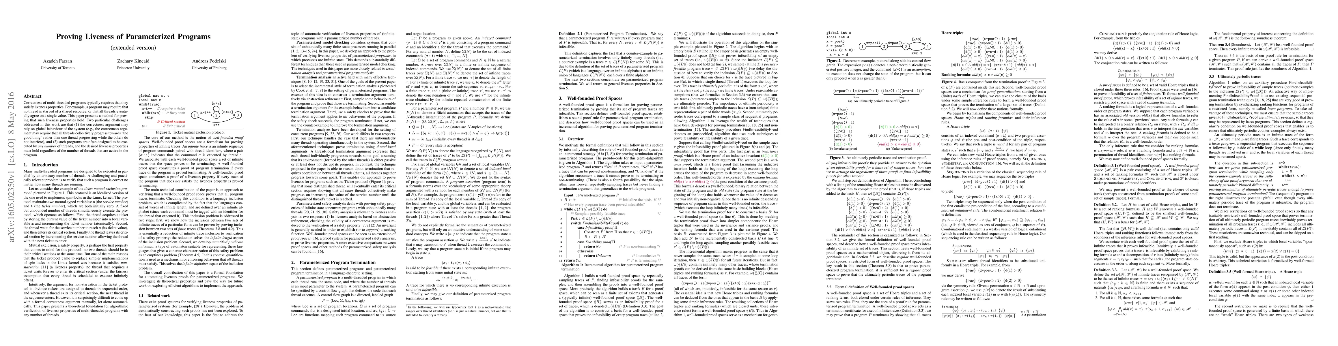 This paper introduces a method for proving liveness properties in multi-threaded parameterized programs, addressing the challenges of global system behavior and the need for properties to hold regardless of the number of active threads. The approach ensures that no thread is starved and that all threads eventually agree on a single value.
