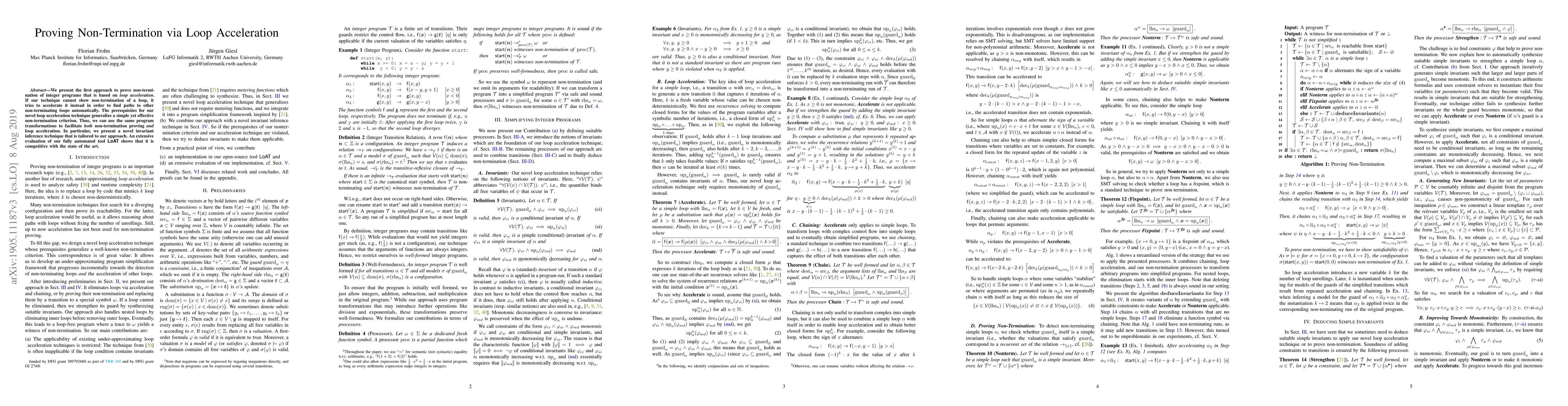This paper introduces a novel method for proving non-termination in integer programs using loop acceleration, which automatically finds paths to other non-terminating loops. The technique employs a new invariant inference method and demonstrates competitive performance through a fully automated tool, LoAT.