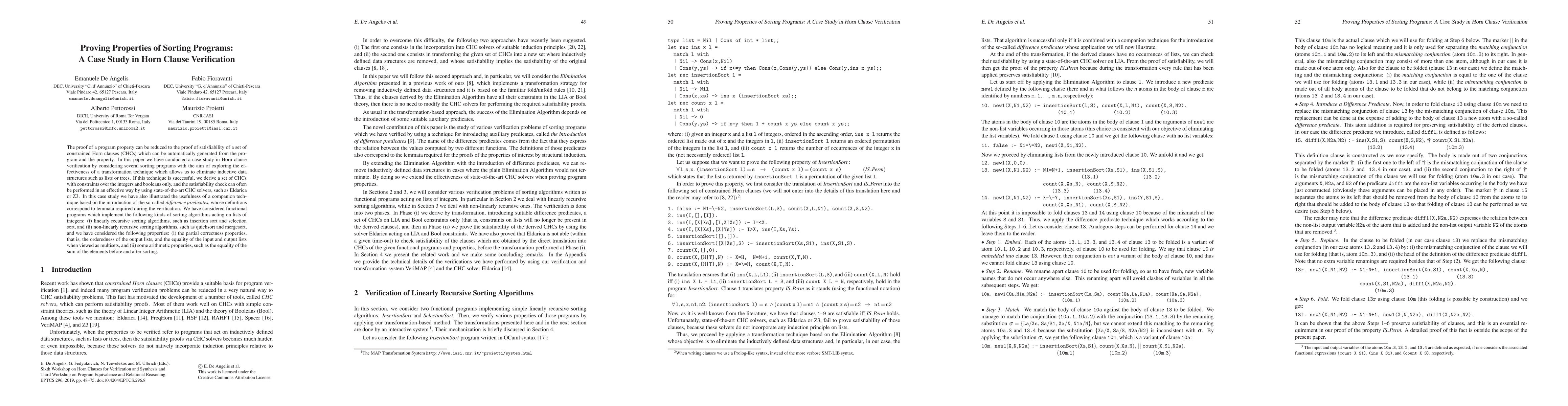 This study explores the effectiveness of a technique to prove properties of sorting programs using Horn clause verification, achieving success with various algorithms including linearly and non-linearly recursive sorting algorithms.