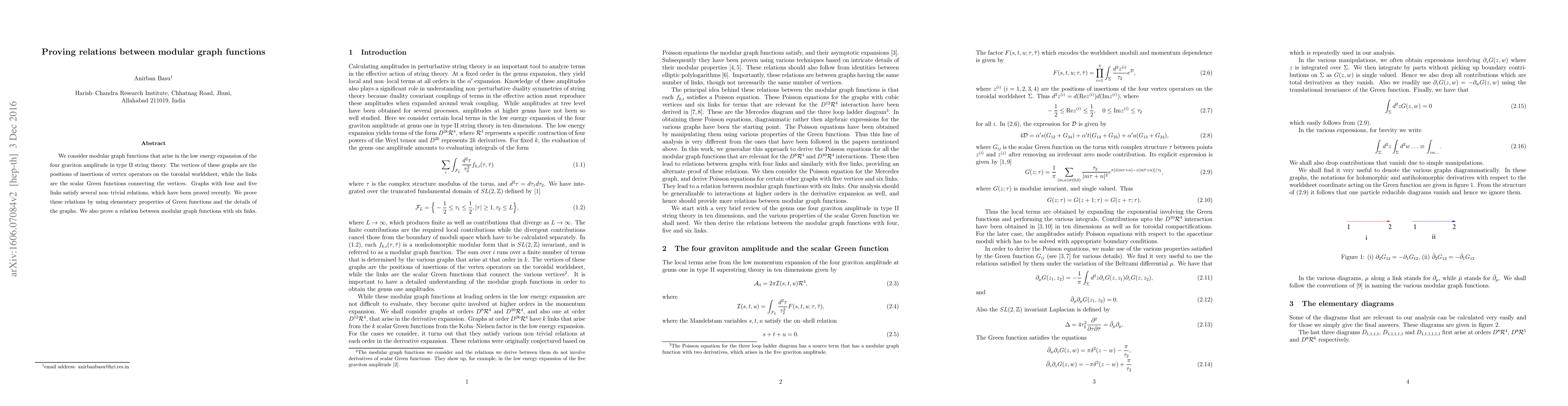 This paper establishes non-trivial relations among modular graph functions in type II string theory, specifically for four and five-link graphs, and introduces a new relation for six-link graphs, proving them through elementary properties of Green functions and graph details.