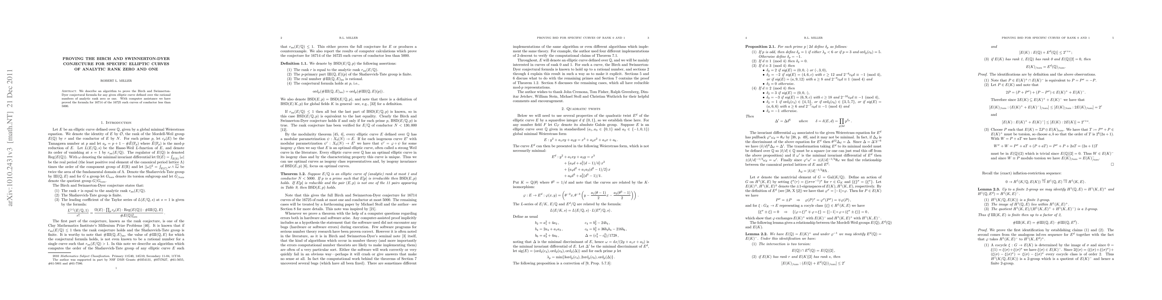 Summary: This paper presents an algorithm to validate the Birch and Swinnerton-Dyer conjecture for elliptic curves over rational numbers with analytic ranks zero or one, and demonstrates its application to prove the conjecture for 16714 out of 16725 specific curves with conductors below 5000.