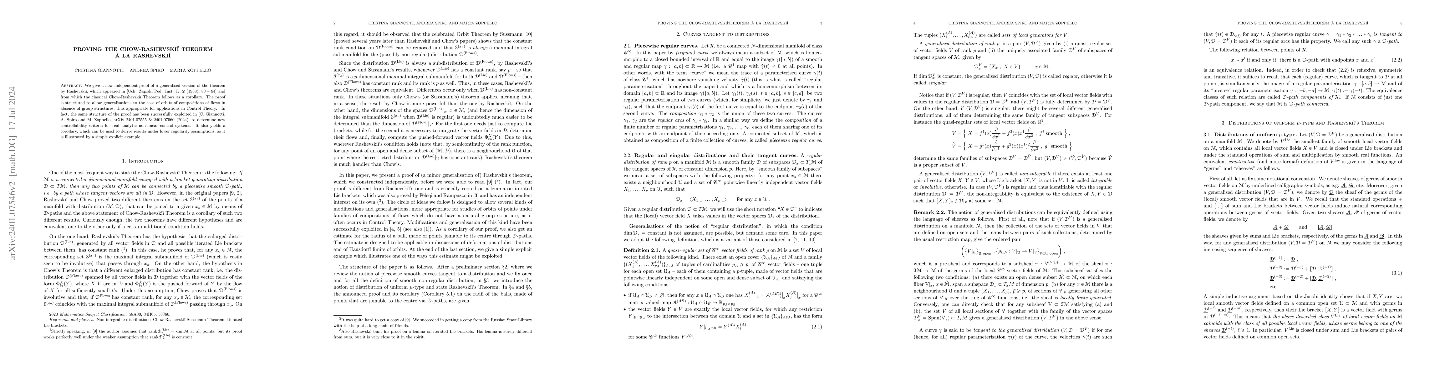 We give a new independent proof of a generalised version of the theorem by Rashevskii, which appeared in [Uch. Zapiski Ped. Inst. K. 2 (1938), 83 - 94] and from which the classical Chow-Rashevskii Theorem follows as a corollary. The proof is structured to allow generalisations to the case of orbits of compositions of flows in absence of group structures, thus appropriate for applications in Control Theory.