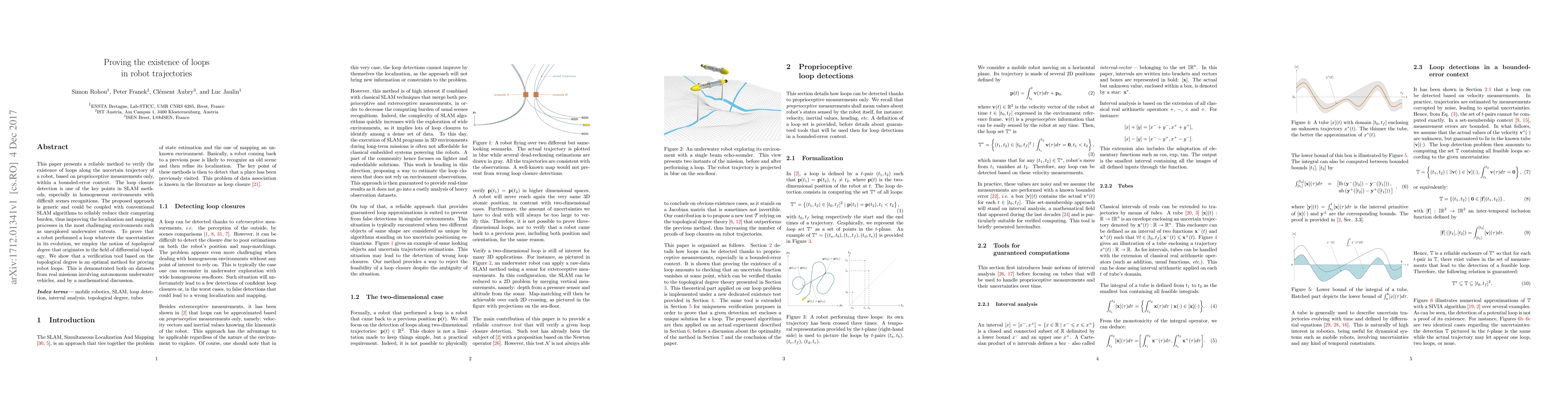 This paper presents a reliable method to verify the existence of loops along the uncertain trajectory of a robot, based on proprioceptive measurements only, within a bounded-error context. The loop closure detection is one of the key points in SLAM methods, especially in homogeneous environments with difficult scenes recognitions. The proposed approach is generic and could be coupled with conventional SLAM algorithms to reliably reduce their computing burden, thus improving the localization and mapping processes in the most challenging environments such as unexplored underwater extents. To prove that a robot performed a loop whatever the uncertainties in its evolution, we employ the notion of topological degree that originates in the field of differential topology. We show that a verification tool based on the topological degree is an optimal method for proving robot loops. This is demonstrated both on datasets from real missions involving autonomous underwater vehicles, and by a mathematical discussion.