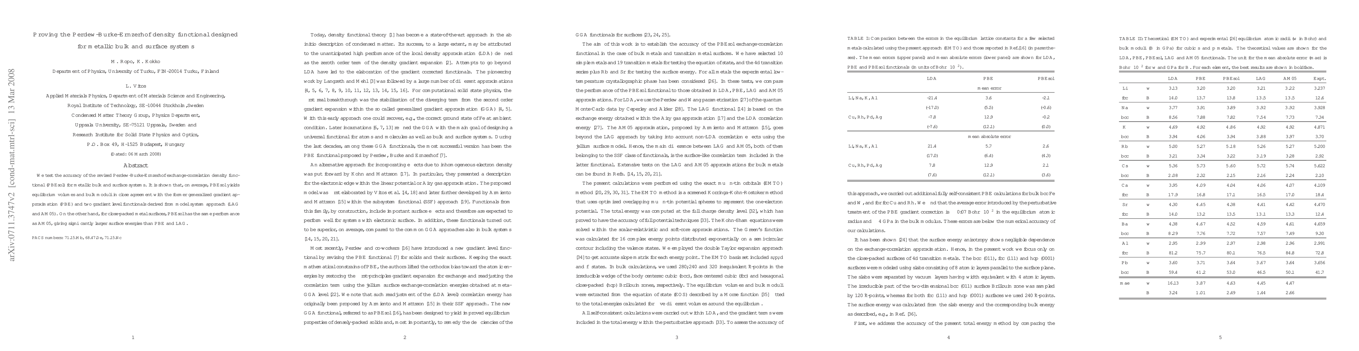 We test the accuracy of the revised Perdew-Burke-Ernzerhof exchange-correlation density functional (PBEsol) for metallic bulk and surface systems. It is shown that, on average, PBEsol yields equilibrium volumes and bulk moduli in close agreement with the former generalized gradient approximation (PBE) and two gradient level functionals derived from model system approach (LAG and AM05). On the other hand, for close-packed metal surfaces, PBEsol has the same performance as AM05, giving significantly larger surface energies than PBE and LAG.