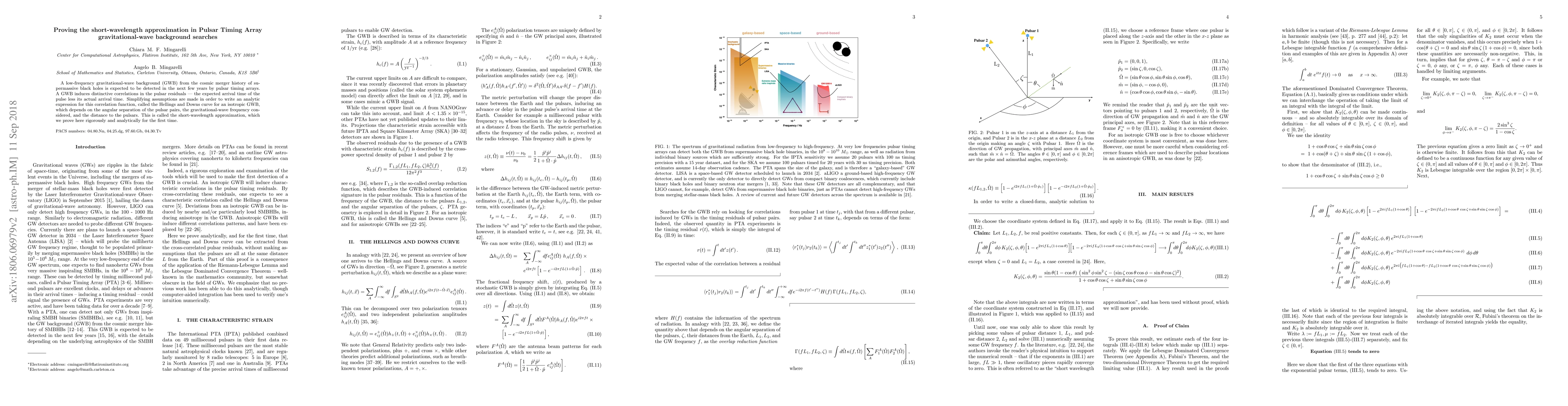 This paper rigorously proves the short-wavelength approximation for detecting low-frequency gravitational-wave backgrounds from supermassive black hole mergers using pulsar timing arrays. It analytically verifies the assumptions used to derive the Hellings and Downs curve, which models the correlation in pulsar residuals based on angular separation and gravitational-wave frequency.