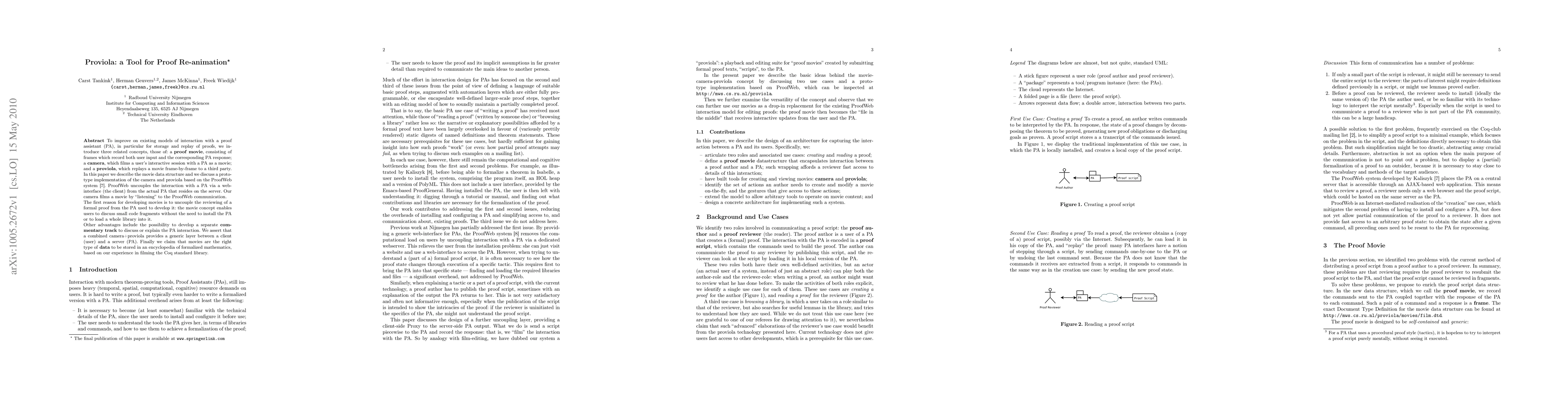 To improve on existing models of interaction with a proof assistant (PA), in particular for storage and replay of proofs, we in- troduce three related concepts, those of: a proof movie, consisting of frames which record both user input and the corresponding PA response; a camera, which films a user's interactive session with a PA as a movie; and a proviola, which replays a movie frame-by-frame to a third party. In this paper we describe the movie data structure and we discuss a proto- type implementation of the camera and proviola based on the ProofWeb system. ProofWeb uncouples the interaction with a PA via a web- interface (the client) from the actual PA that resides on the server. Our camera films a movie by "listening" to the ProofWeb communication. The first reason for developing movies is to uncouple the reviewing of a formal proof from the PA used to develop it: the movie concept enables users to discuss small code fragments without the need to install the PA or to load a whole library into it. Other advantages include the possibility to develop a separate com- mentary track to discuss or explain the PA interaction. We assert that a combined camera+proviola provides a generic layer between a client (user) and a server (PA). Finally we claim that movies are the right type of data to be stored in an encyclopedia of formalized mathematics, based on our experience in filming the Coq standard library.