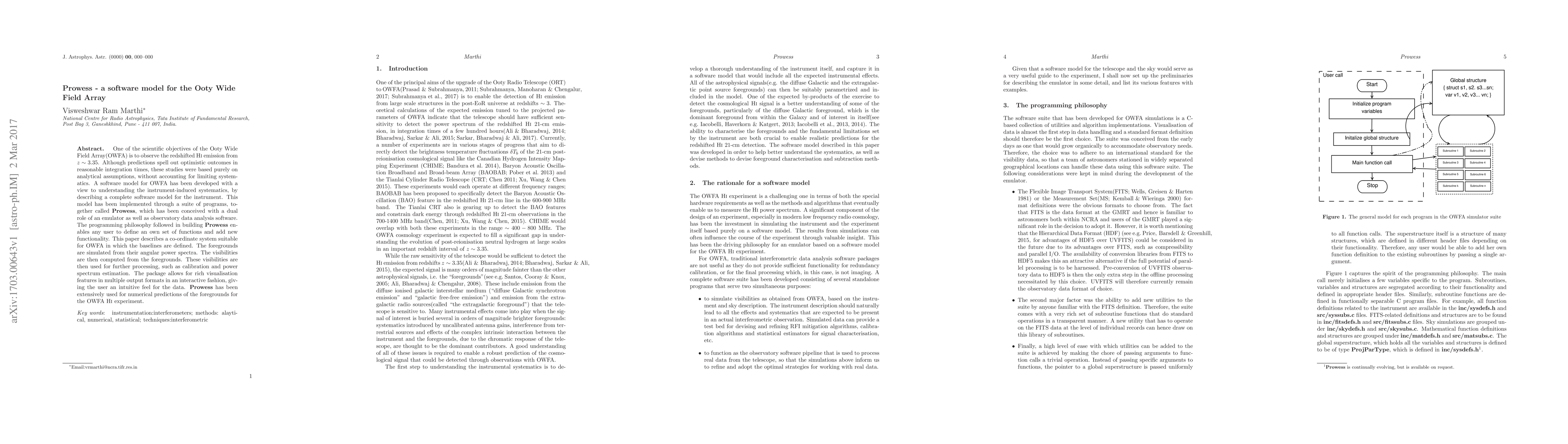 The paper introduces Prowess, a software model for the Ooty Wide Field Array (OWFA), designed to simulate instrument-induced systematics and facilitate data analysis. Prowess enables users to define custom functions and provides rich visualization features for interpreting HI emission observations.