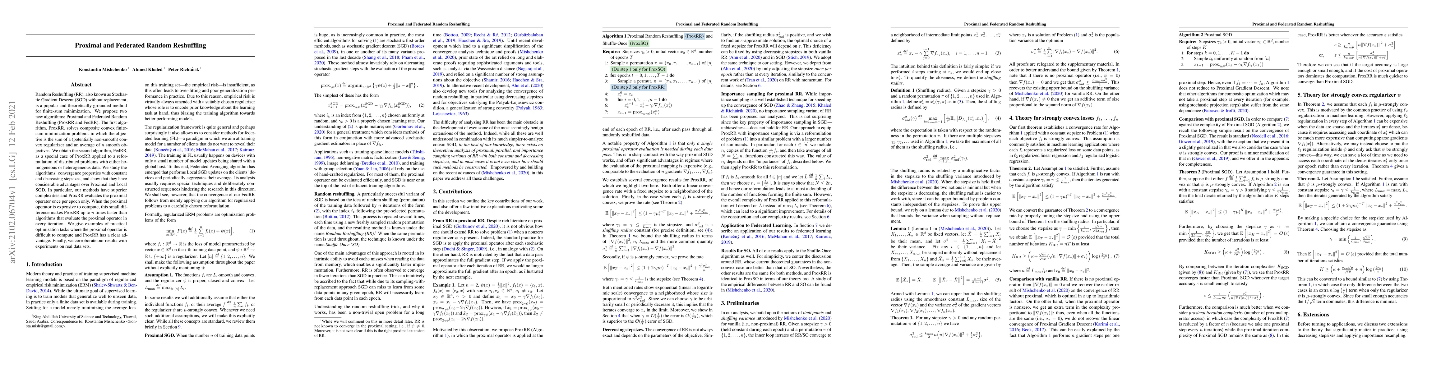 This paper proposes two new algorithms, Proximal and Federated Random Reshuffling (ProxRR and FedRR), for solving composite convex finite-sum minimization problems with either smooth or non-smooth objectives. ProxRR is shown to be faster and more efficient than existing methods, especially when the proximal operator is computationally expensive.