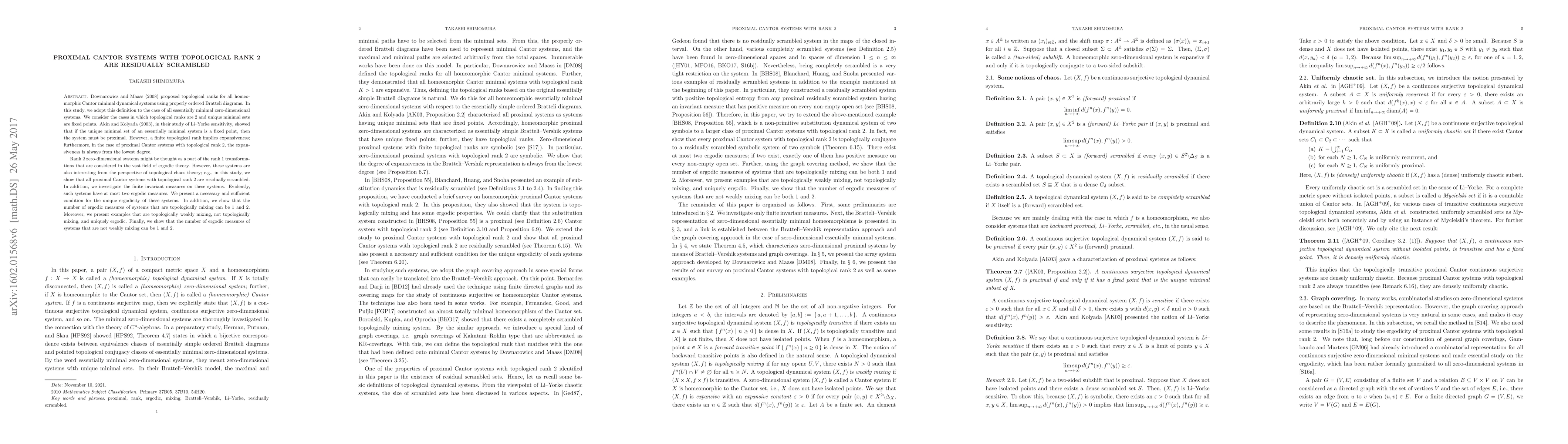 This paper explores proximal Cantor systems with topological rank 2, demonstrating they are residually scrambled. It also investigates finite invariant measures, showing these systems have at most two ergodic measures and presenting conditions for unique ergodicity and the number of ergodic measures in various mixing scenarios.