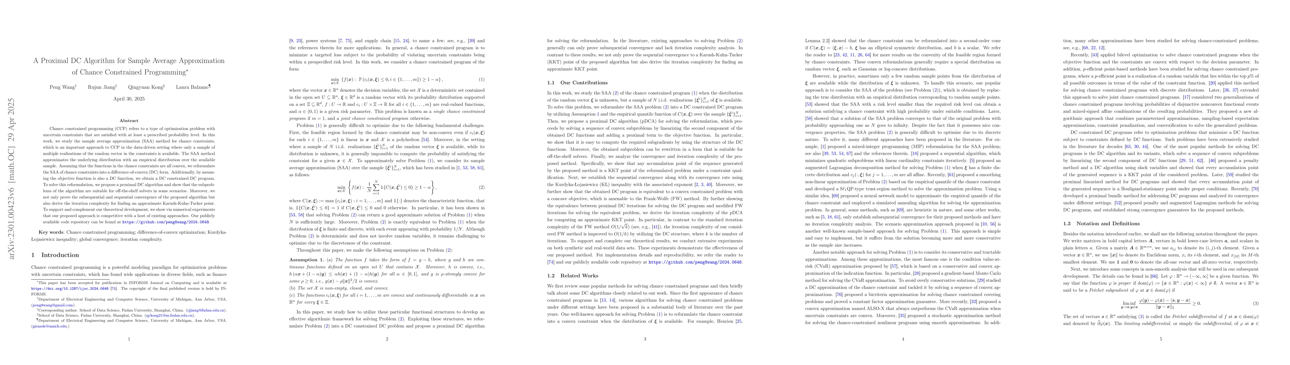 This paper proposes a proximal DC algorithm for solving structured chance constrained programming problems where the objective is a difference-of-convex function. The authors prove the convergence of the algorithm and demonstrate its effectiveness through numerical experiments, showing competitive performance against existing methods.