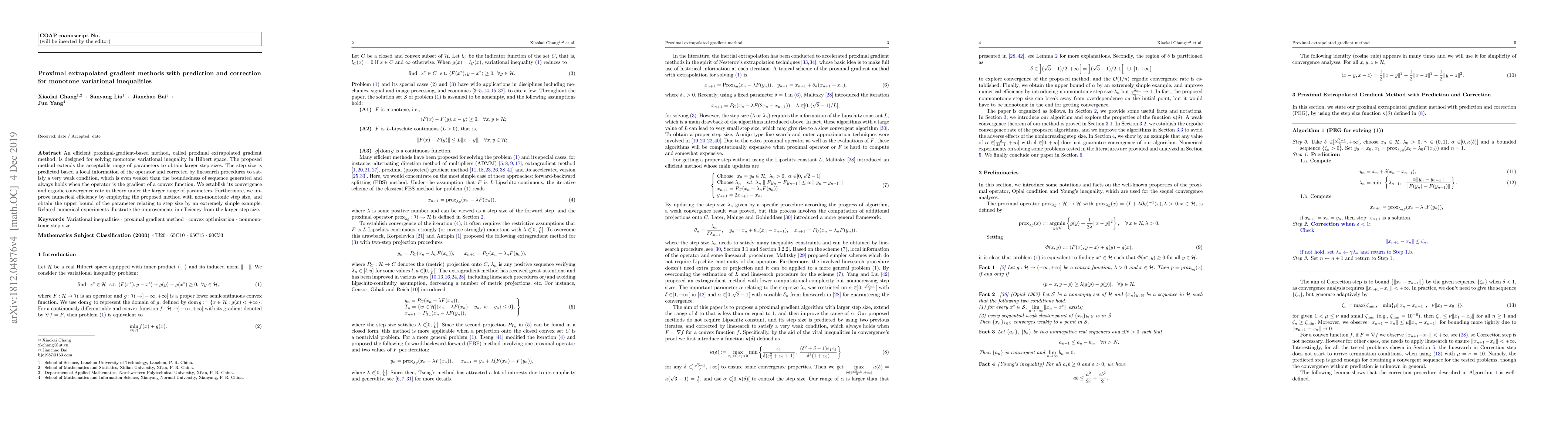 This paper introduces a proximal extrapolated gradient method for solving monotone variational inequalities in Hilbert space, enhancing step size through prediction and correction techniques. The method achieves convergence under a weak condition, and numerical experiments demonstrate improved efficiency due to larger step sizes.