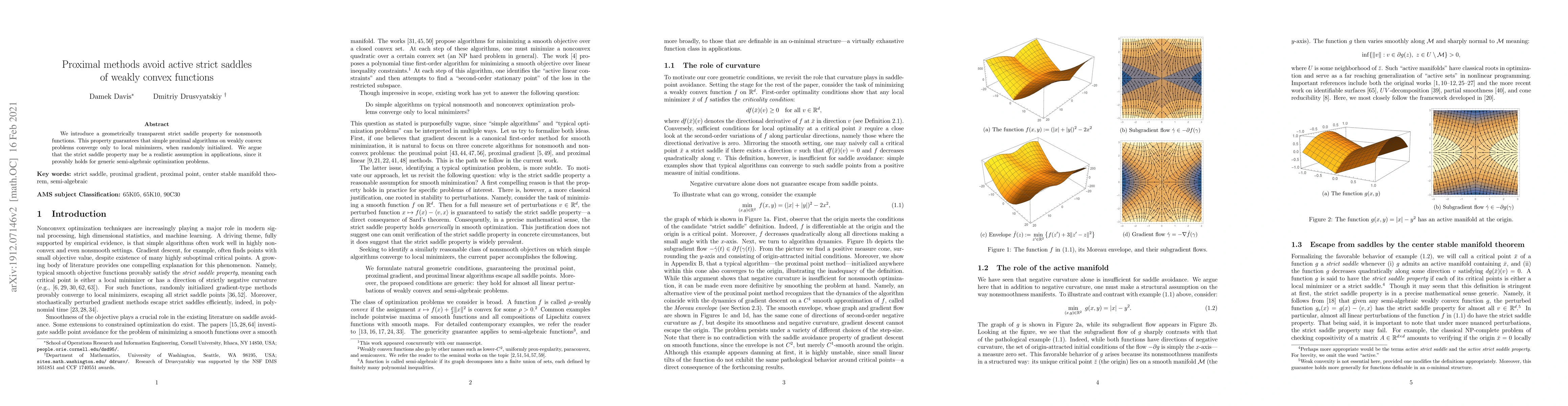 Summary: This paper introduces a strict saddle property for nonsmooth weakly convex functions, ensuring proximal algorithms converge to local minimizers when randomly initialized. It argues that this property is realistic for generic semi-algebraic optimization problems.
