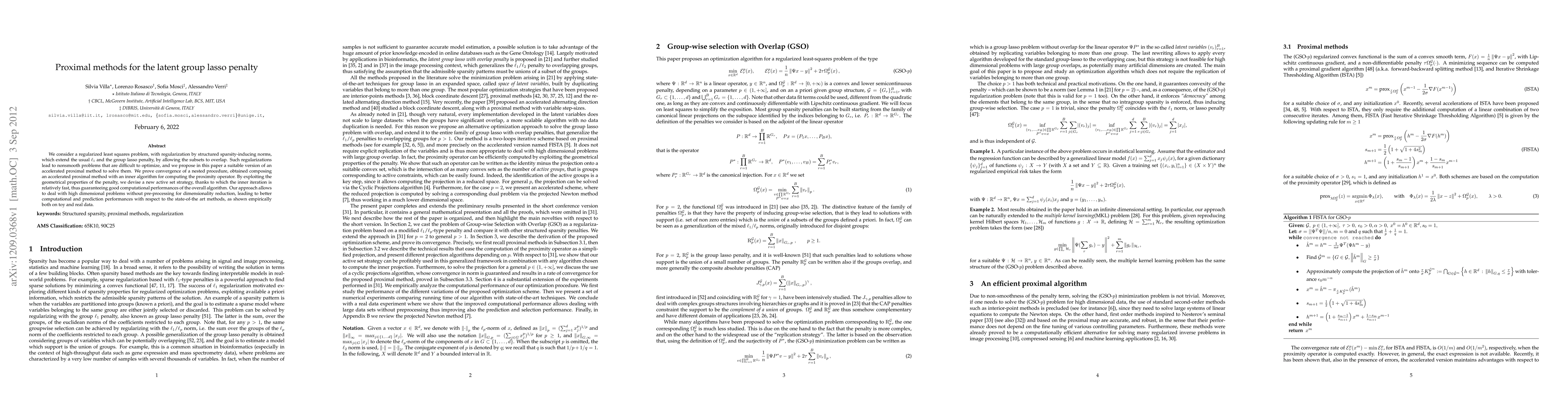 This paper proposes an accelerated proximal method for solving regularized least squares problems with overlapping group lasso penalties. The method combines an accelerated proximal approach with a fast inner algorithm for computing the proximity operator, achieving better computational and prediction performance compared to existing methods.