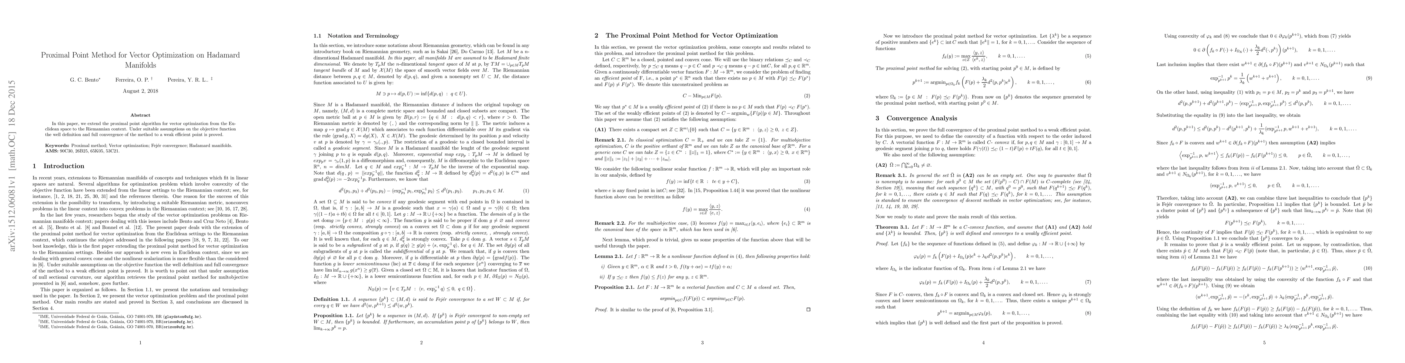 This paper extends the proximal point method from Euclidean to Riemannian settings for vector optimization on Hadamard manifolds, proving its well-definition and full convergence to a weak efficient point under appropriate assumptions.