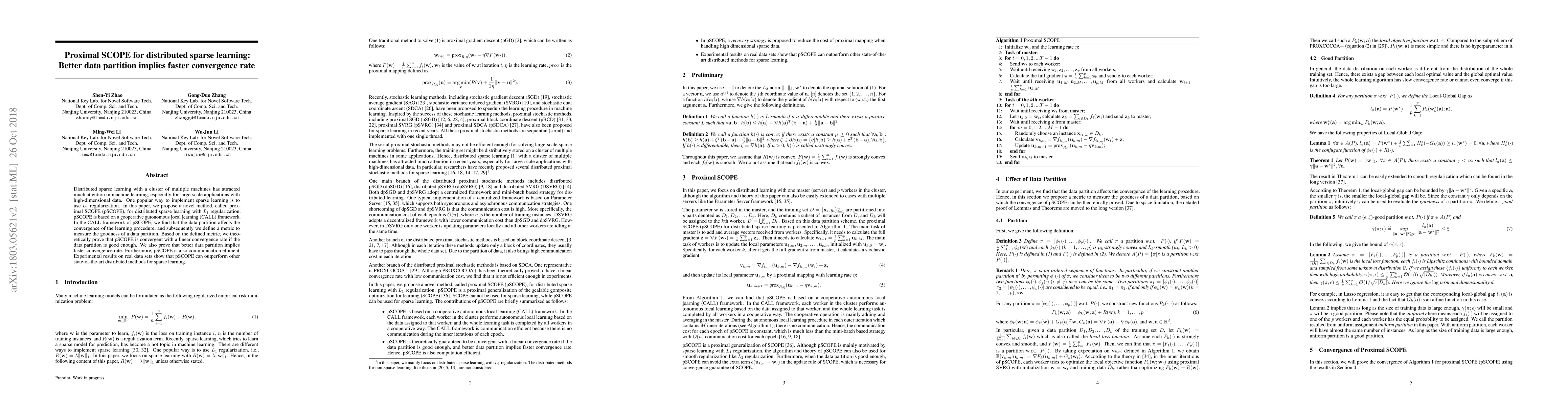 This paper introduces proximal SCOPE (pSCOPE), a novel distributed sparse learning method based on an autonomous local learning framework. It demonstrates that better data partitioning leads to faster convergence rates and outperforms other distributed methods in experiments.