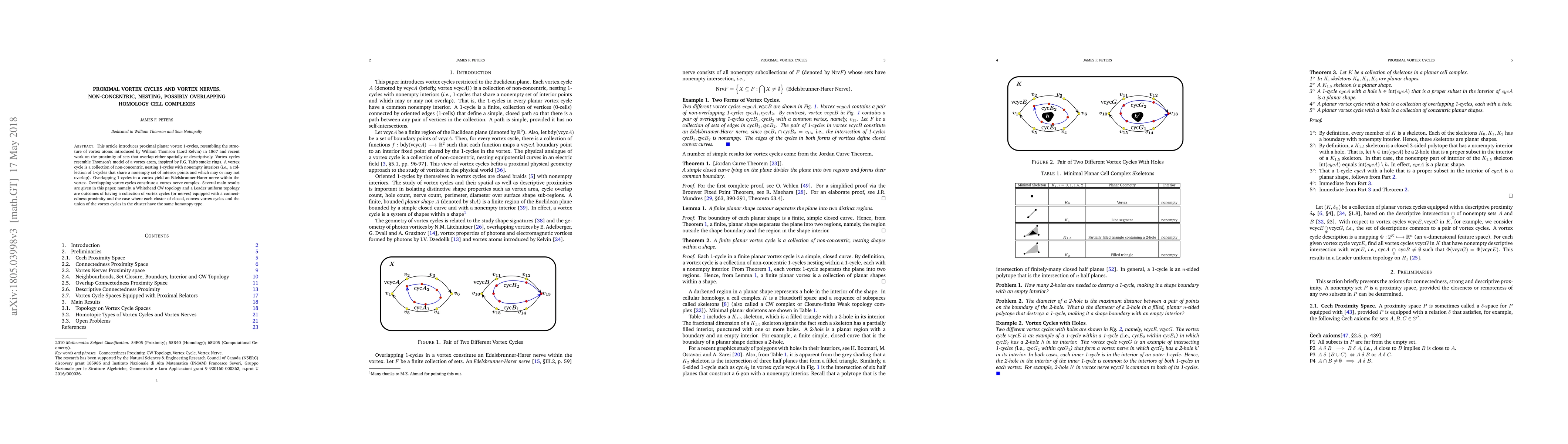 This paper introduces proximal vortex cycles, resembling vortex atoms, and explores their topological properties, including the formation of vortex nerves from overlapping cycles. It presents results on Whitehead CW topology and Leader uniform topology for these structures.