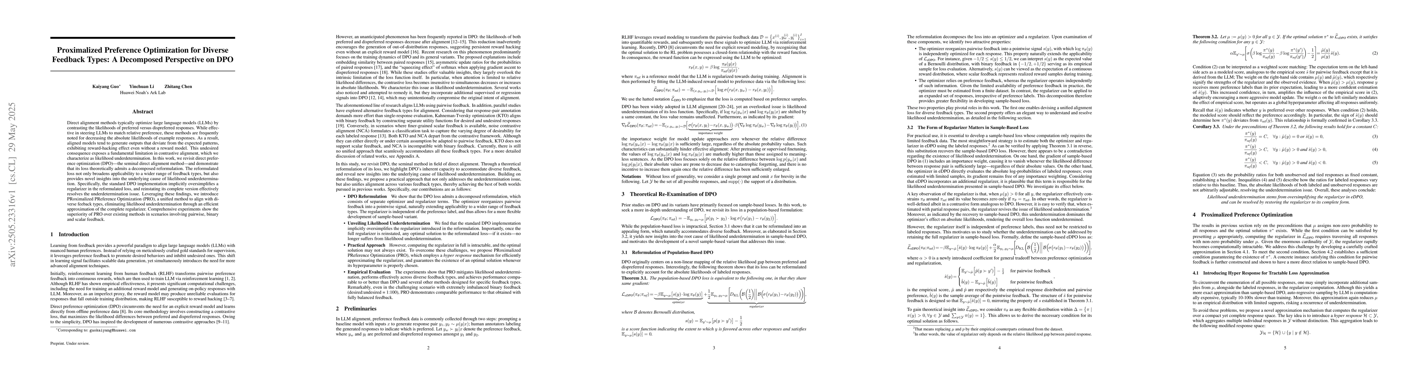 The paper revisits the Direct Preference Optimization (DPO) method, proposes a decomposed reformulation of its loss, and introduces PRO, a unified method for aligning with diverse feedback types by approximating a complete regularizer.