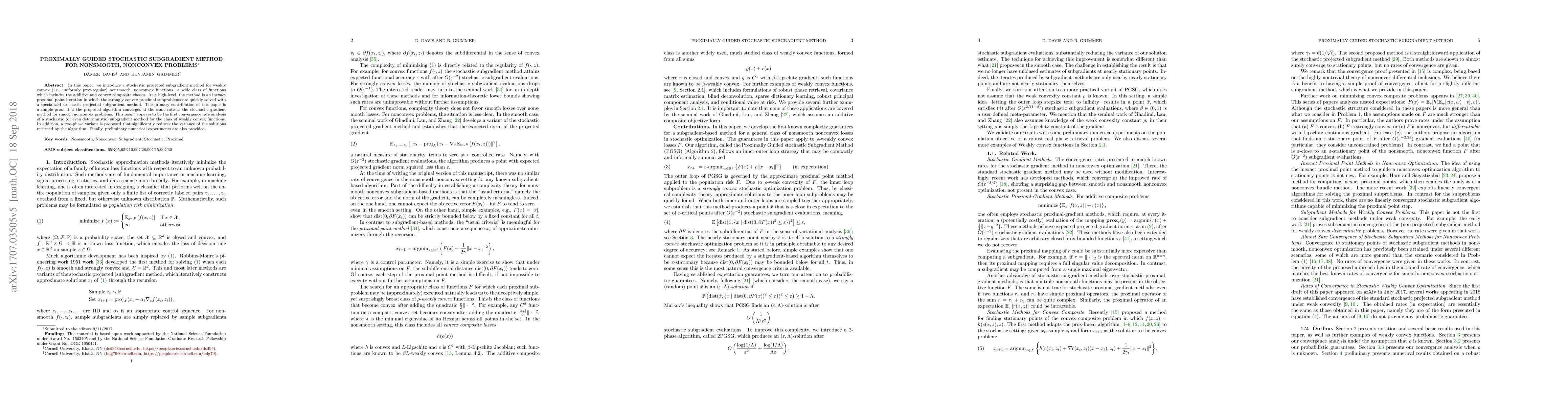 This paper proposes a stochastic projected subgradient method for weakly convex, nonsmooth, nonconvex functions, demonstrating its convergence rate comparable to the stochastic gradient method for smooth nonconvex problems. The method employs an inexact proximal point iteration to solve strongly convex subproblems efficiently.