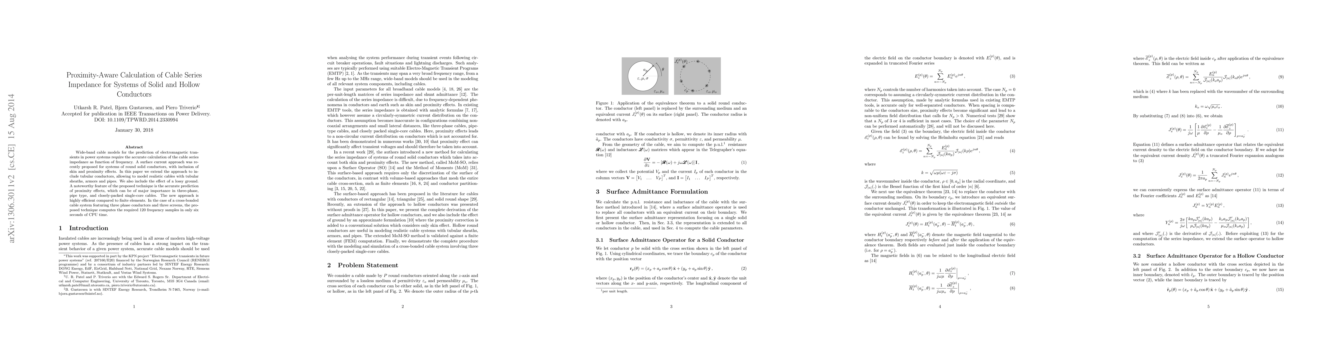 This paper extends a surface current approach to accurately calculate cable series impedance for both solid and hollow conductors, including tubular sheaths and armors. The method efficiently predicts proximity effects and lossy ground influence, achieving significant computational speed compared to finite element methods.