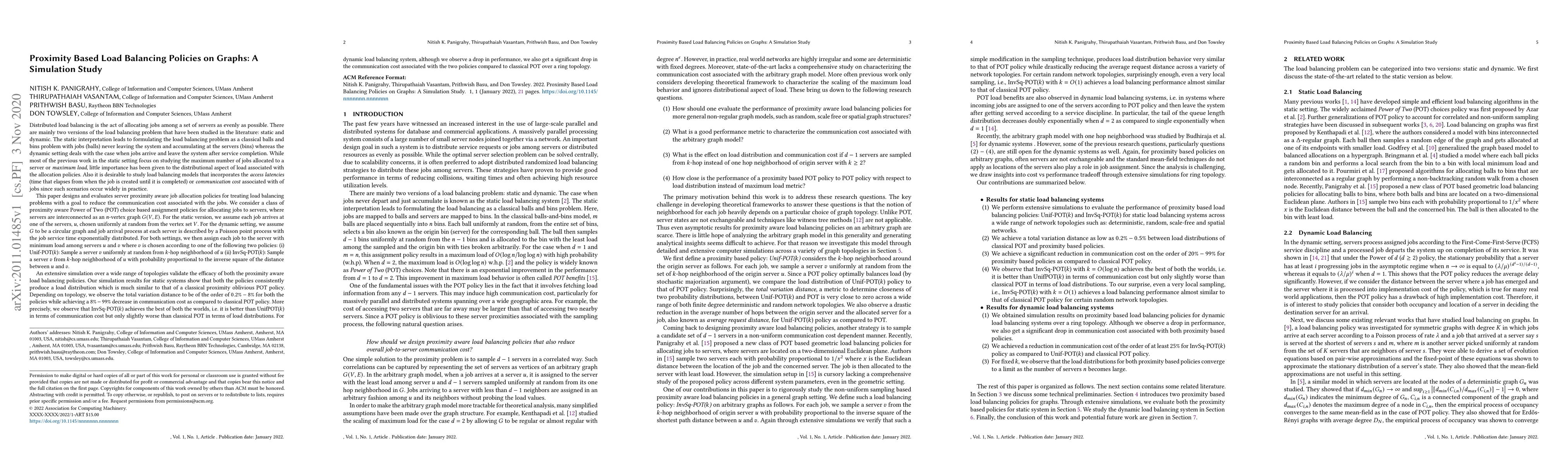 Distributed load balancing is the act of allocating jobs among a set of servers as evenly as possible. There are mainly two versions of the load balancing problem that have been studied in the literature: static and dynamic. The static interpretation leads to formulating the load balancing problem as a case with jobs (balls) never leaving the system and accumulating at the servers (bins) whereas the dynamic setting deals with the case when jobs arrive and leave the system after service completion. This paper designs and evaluates server proximity aware job allocation policies for treating load balancing problems with a goal to reduce the communication cost associated with the jobs. We consider a class of proximity aware Power of Two (POT) choice based assignment policies for allocating jobs to servers, where servers are interconnected as an n-vertex graph G(V, E). For the static version, we assume each job arrives at one of the servers, u. For the dynamic setting, we assume G to be a circular graph and job arrival process at each server is described by a Poisson point process with the job service time exponentially distributed. For both settings, we then assign each job to the server with minimum load among servers u and v where v is chosen according to one of the following two policies: (i) Unif-POT(k): Sample a server v uniformly at random from k-hop neighborhood of u (ii) InvSq-POT(k): Sample a server v from k-hop neighborhood of u with probability proportional to the inverse square of the distance between u and v. Our simulation results show that both the policies consistently produce a load distribution which is much similar to that of a classical proximity oblivious POT policy.