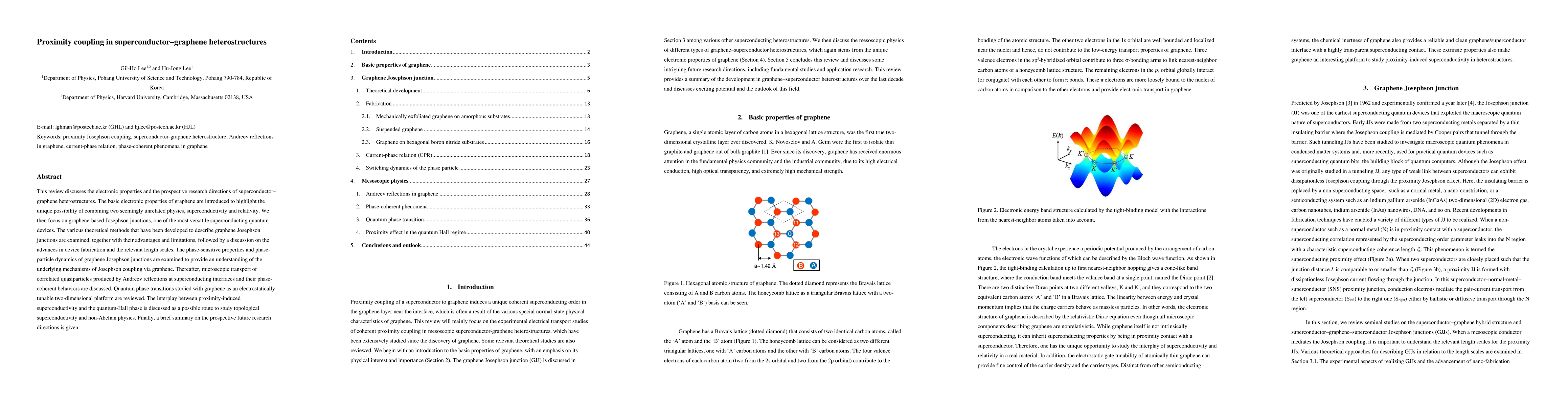 This review discusses the electronic properties and the prospective research directions of superconductor-graphene heterostructures. The basic electronic properties of graphene are introduced to highlight the unique possibility of combining two seemingly unrelated physics, superconductivity and relativity. We then focus on graphene-based Josephson junctions, one of the most versatile superconducting quantum devices. The various theoretical methods that have been developed to describe graphene Josephson junctions are examined, together with their advantages and limitations, followed by a discussion on the advances in device fabrication and the relevant length scales. The phase-sensitive properties and phase-particle dynamics of graphene Josephson junctions are examined to provide an understanding of the underlying mechanisms of Josephson coupling via graphene. Thereafter, microscopic transport of correlated quasiparticles produced by Andreev reflections at superconducting interfaces and their phase-coherent behaviors are discussed. Quantum phase transitions studied with graphene as an electrostatically tunable two-dimensional platform are reviewed. The interplay between proximity-induced superconductivity and the quantum-Hall phase is discussed as a possible route to study topological superconductivity and non-Abelian physics. Finally, a brief summary on the prospective future research directions is given.