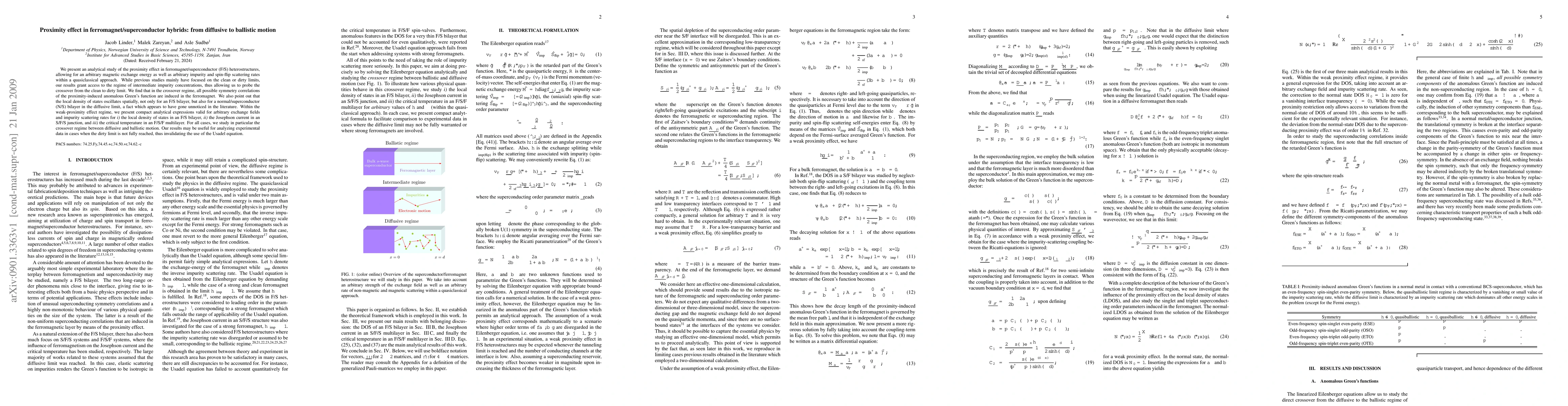 Researchers studied the proximity effect in ferromagnet/superconductor hybrids, finding oscillating local density of states and compact analytical expressions for various properties, revealing a crossover from diffusive to ballistic motion.